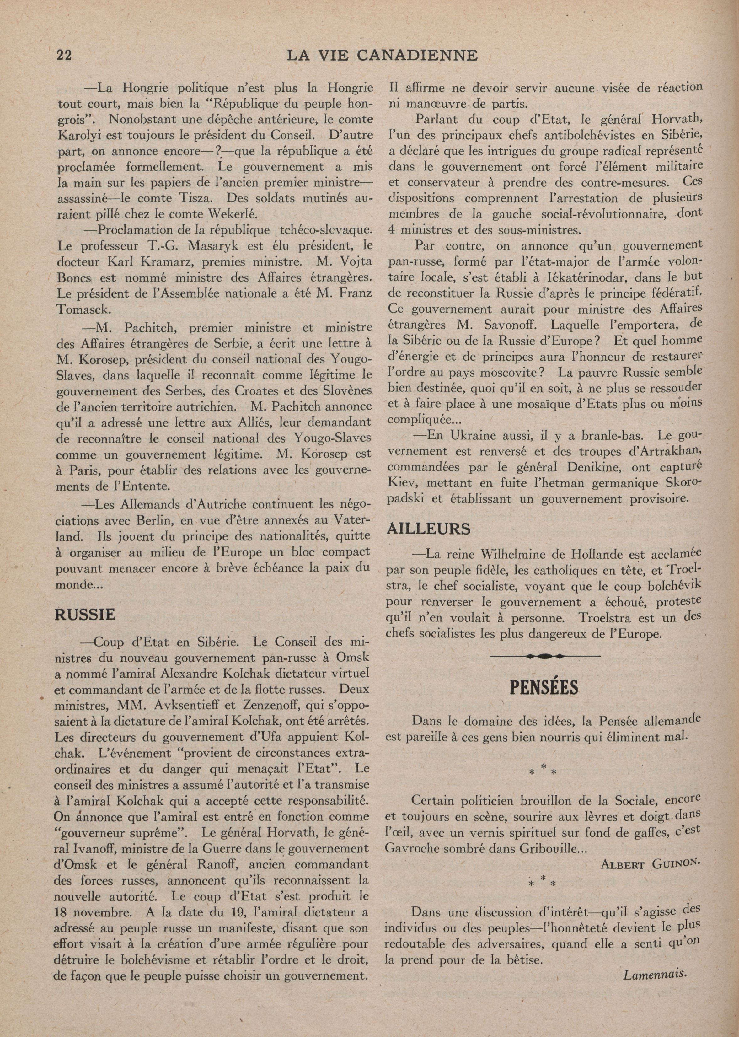 La vie canadienne : T. 1, no 21 (28 nov. 1918)