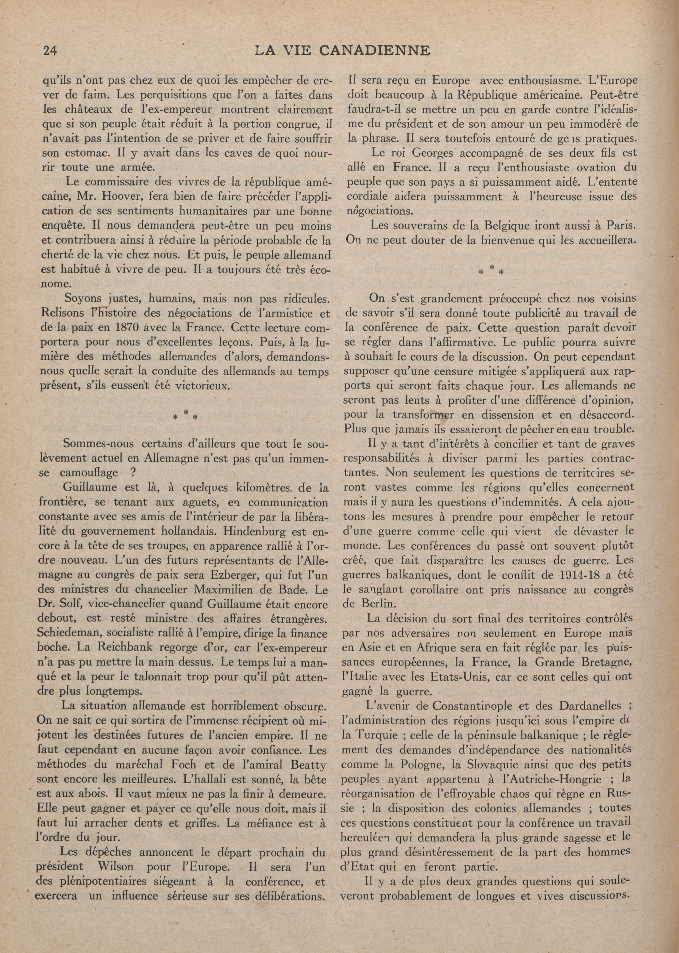 La vie canadienne : T. 1, no 21 (28 nov. 1918)