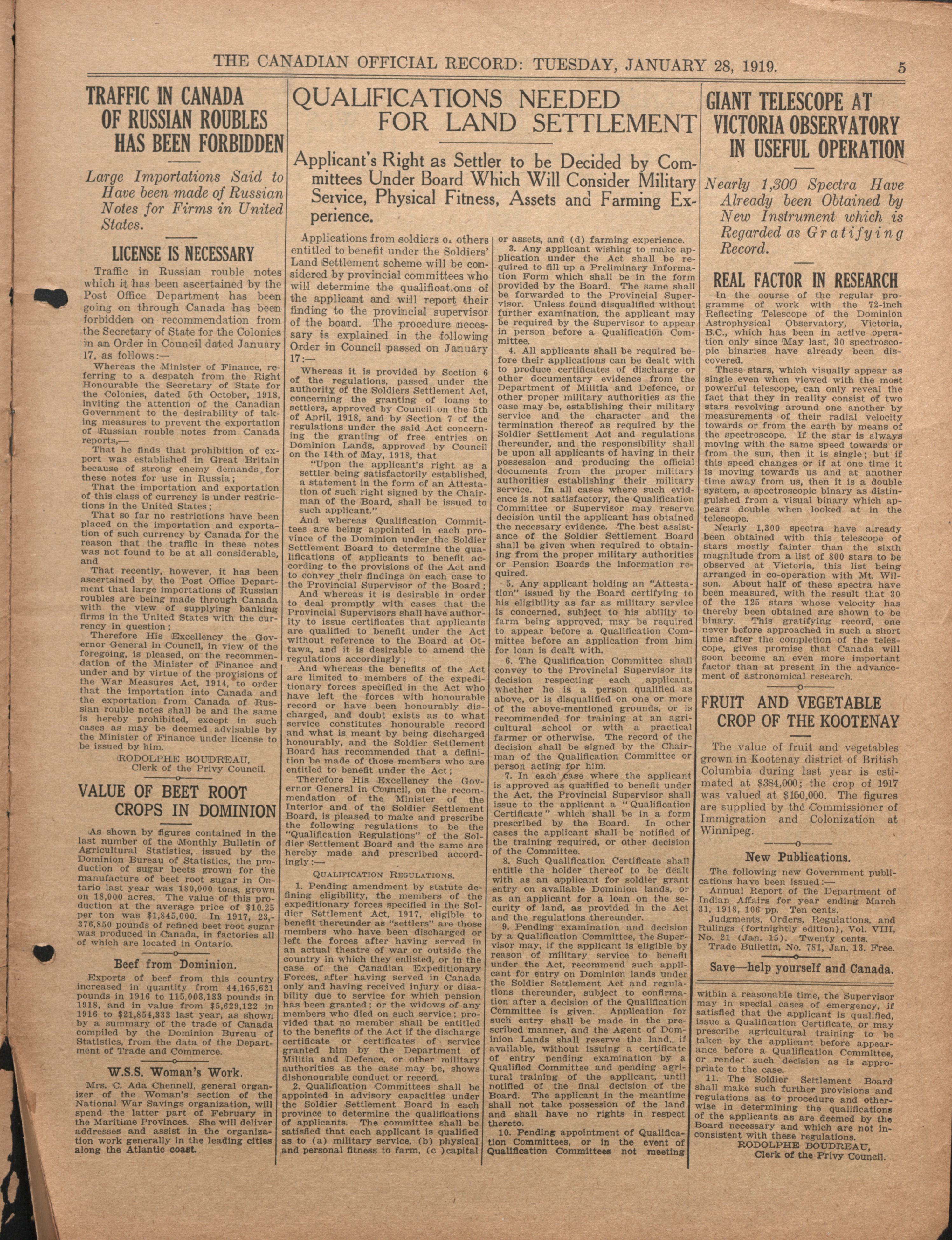Canadian official record : Vol. 1, no. 18 (Jan. 28, 1919)