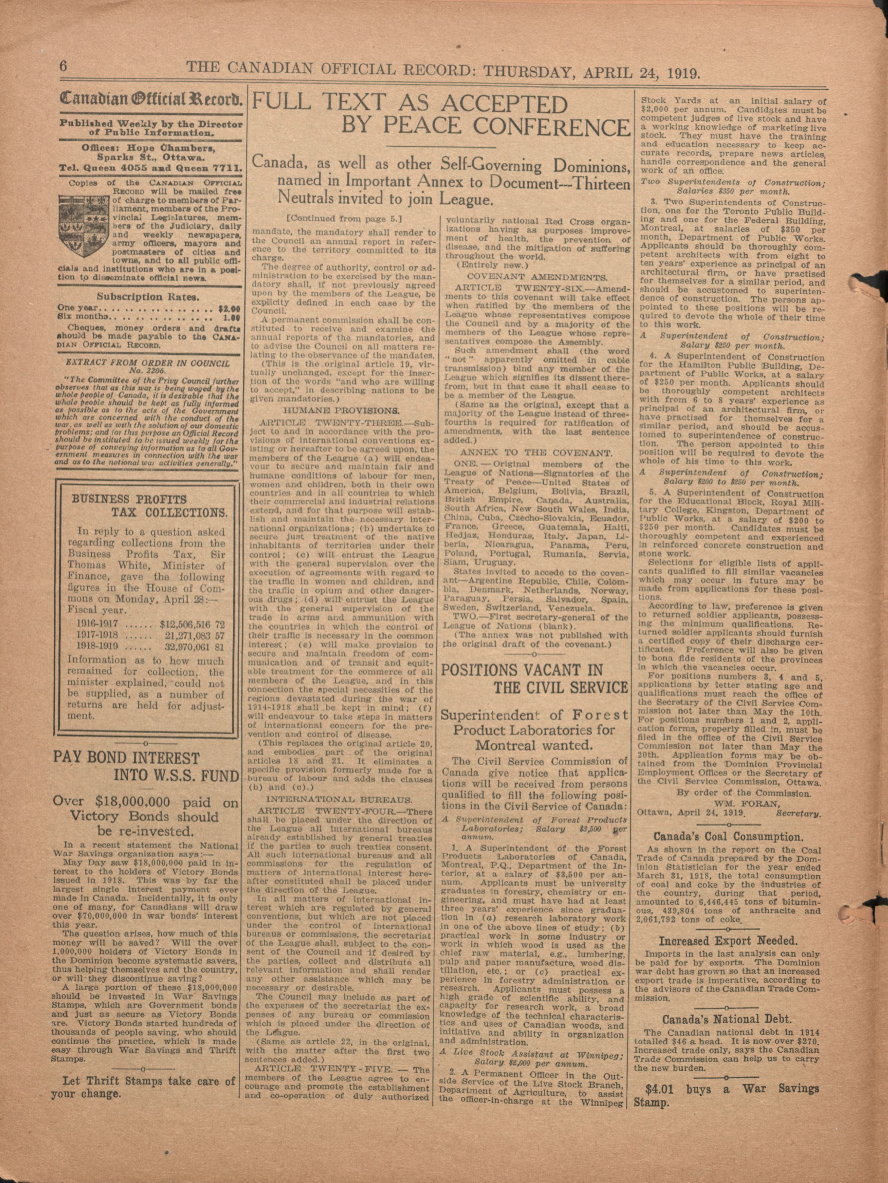 Canadian official record : Vol. 1, no. 30 (Apr. 24, 1919)