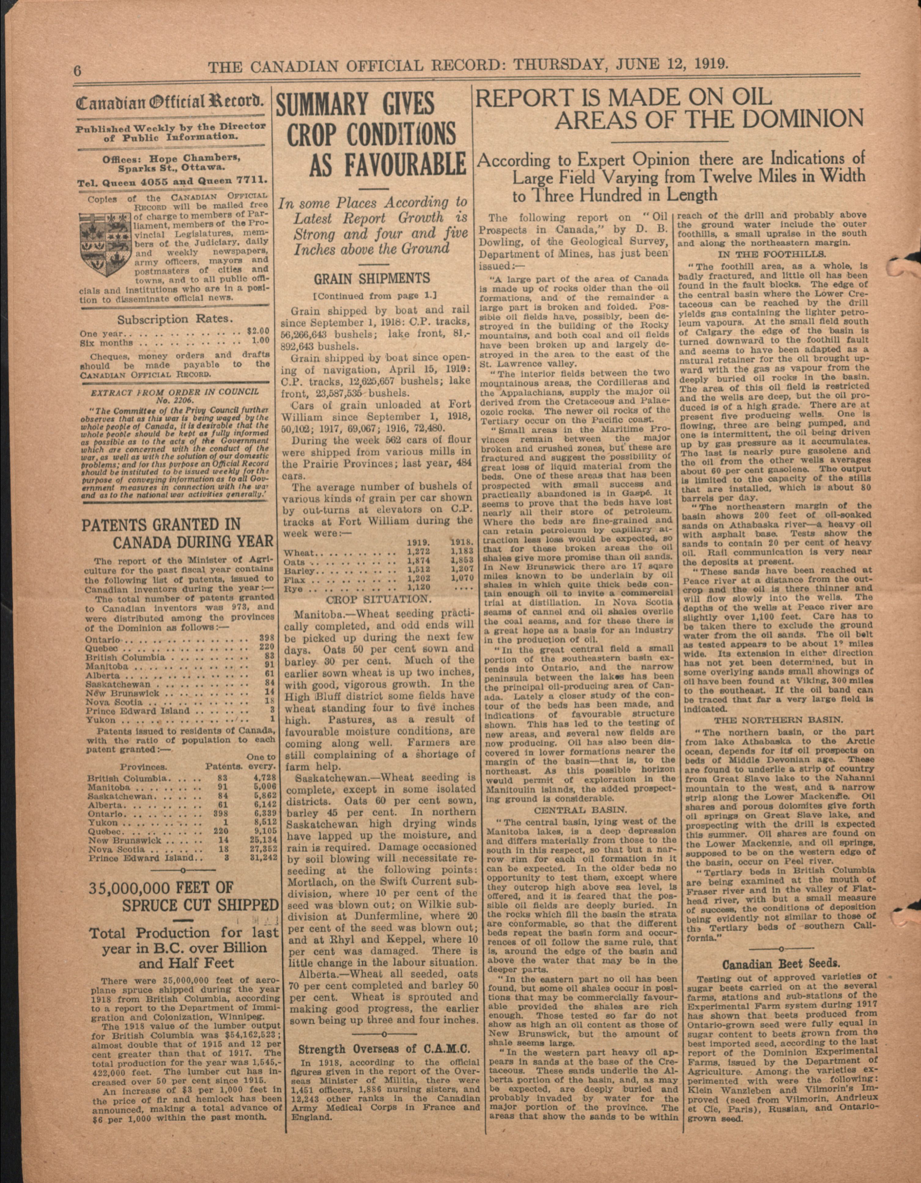 Canadian official record : Vol. 1, no. 35 (June 12, 1919)