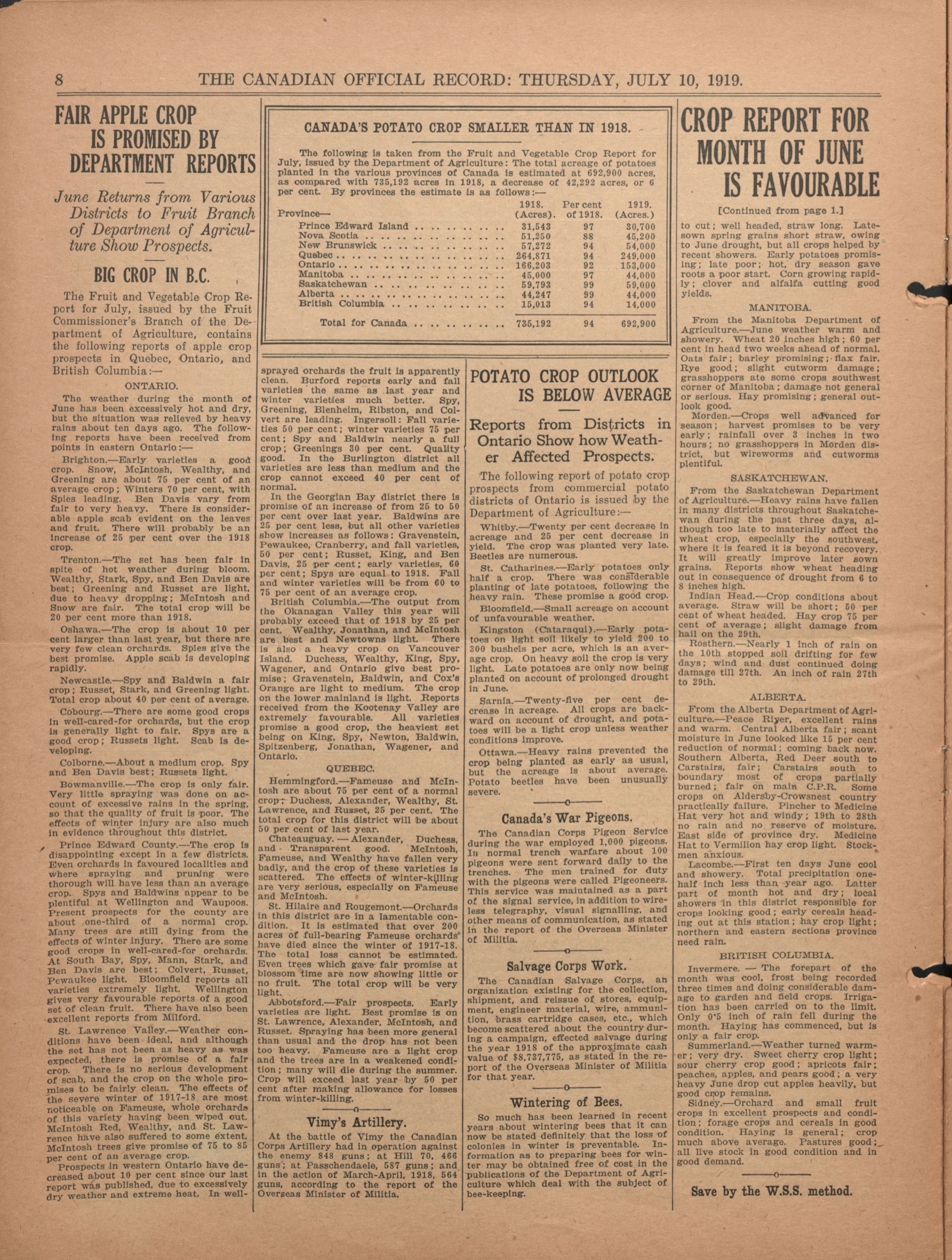 Canadian official record : Vol. 1, no. 39 (July 10, 1919)