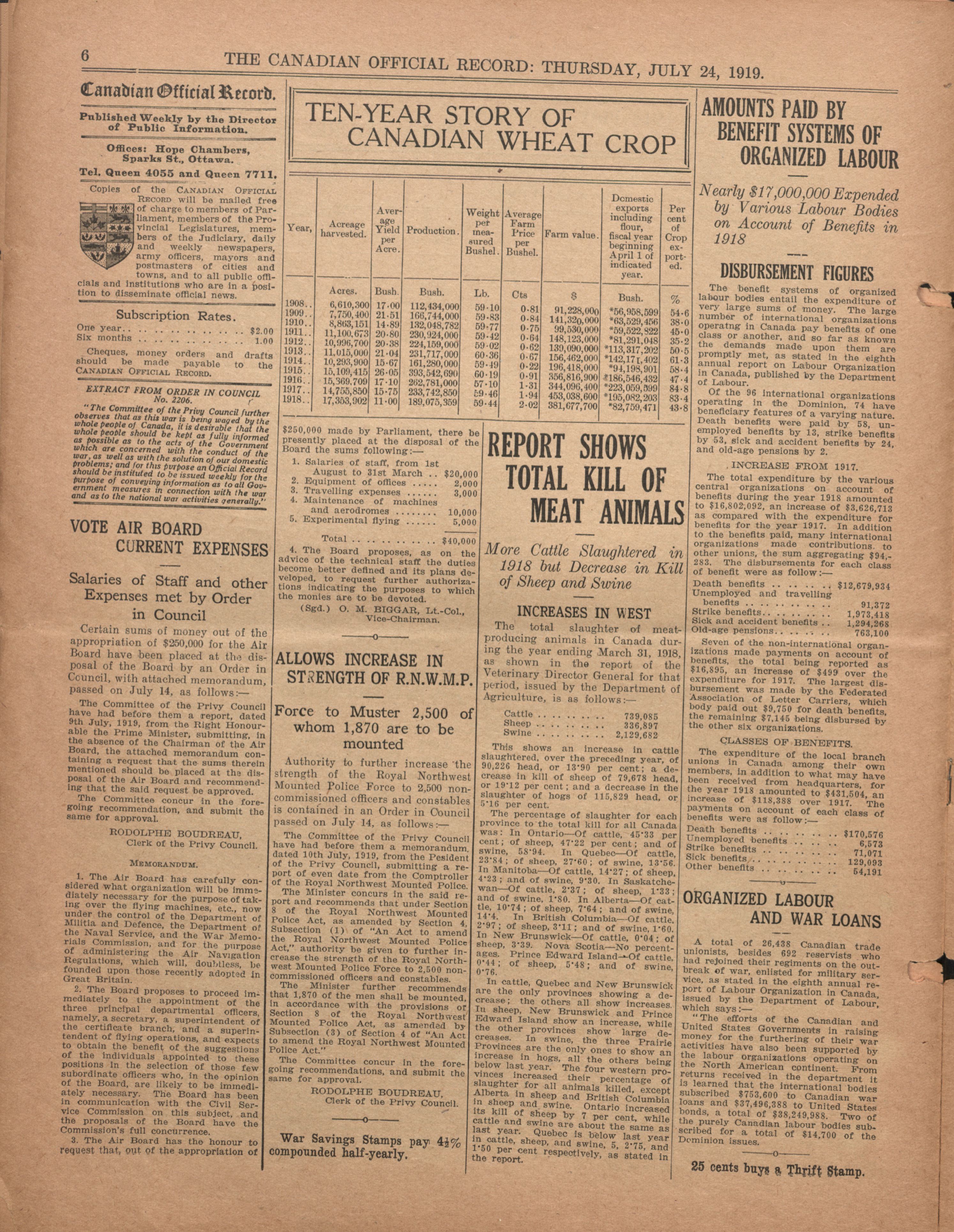 Canadian official record : Vol. 1, no. 41 (July 24, 1919)