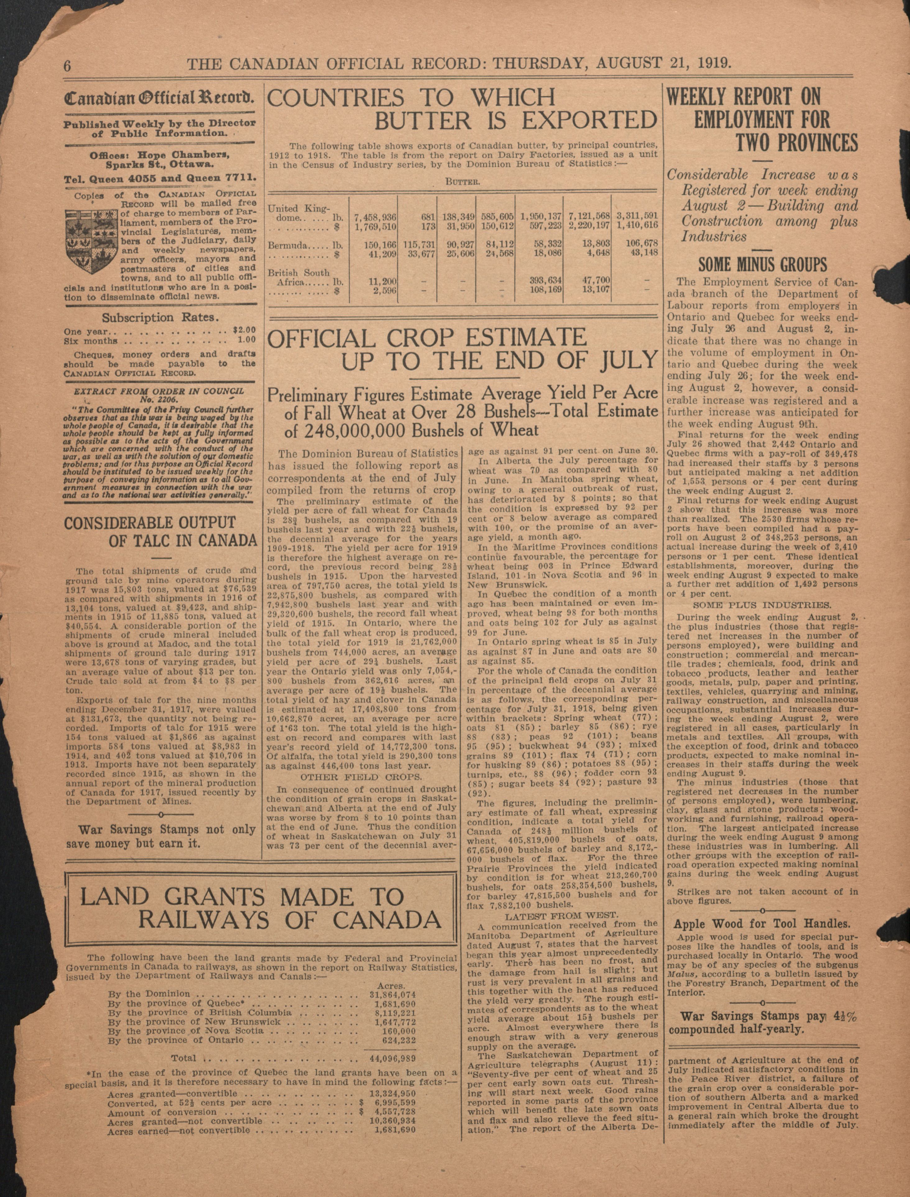 Canadian official record : Vol. 1, no. 45 (Aug. 21, 1919)