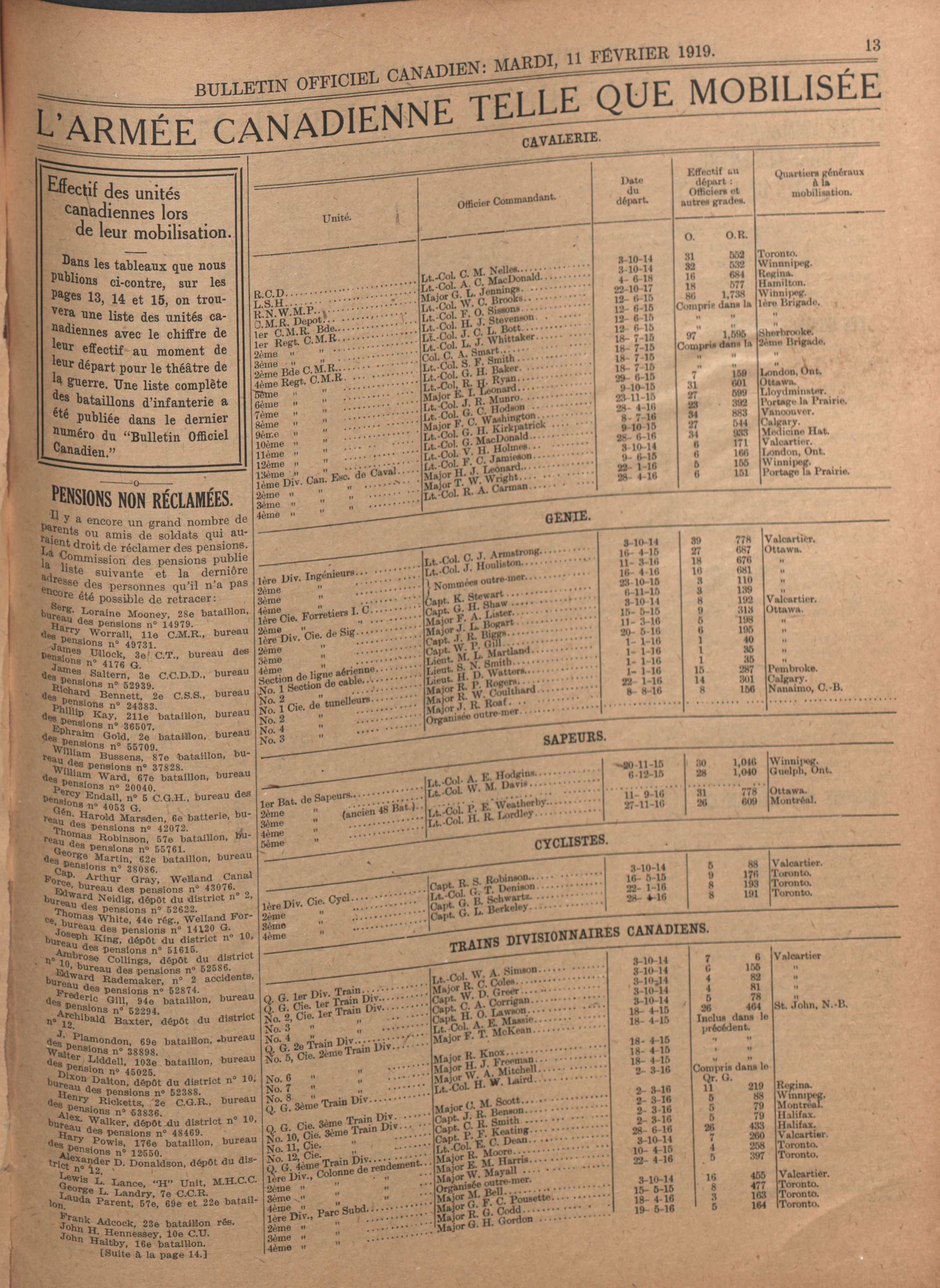 Bulletin officiel canadien : Vol. 1, no 20 (11 févr. 1918 [i.e. 1919])