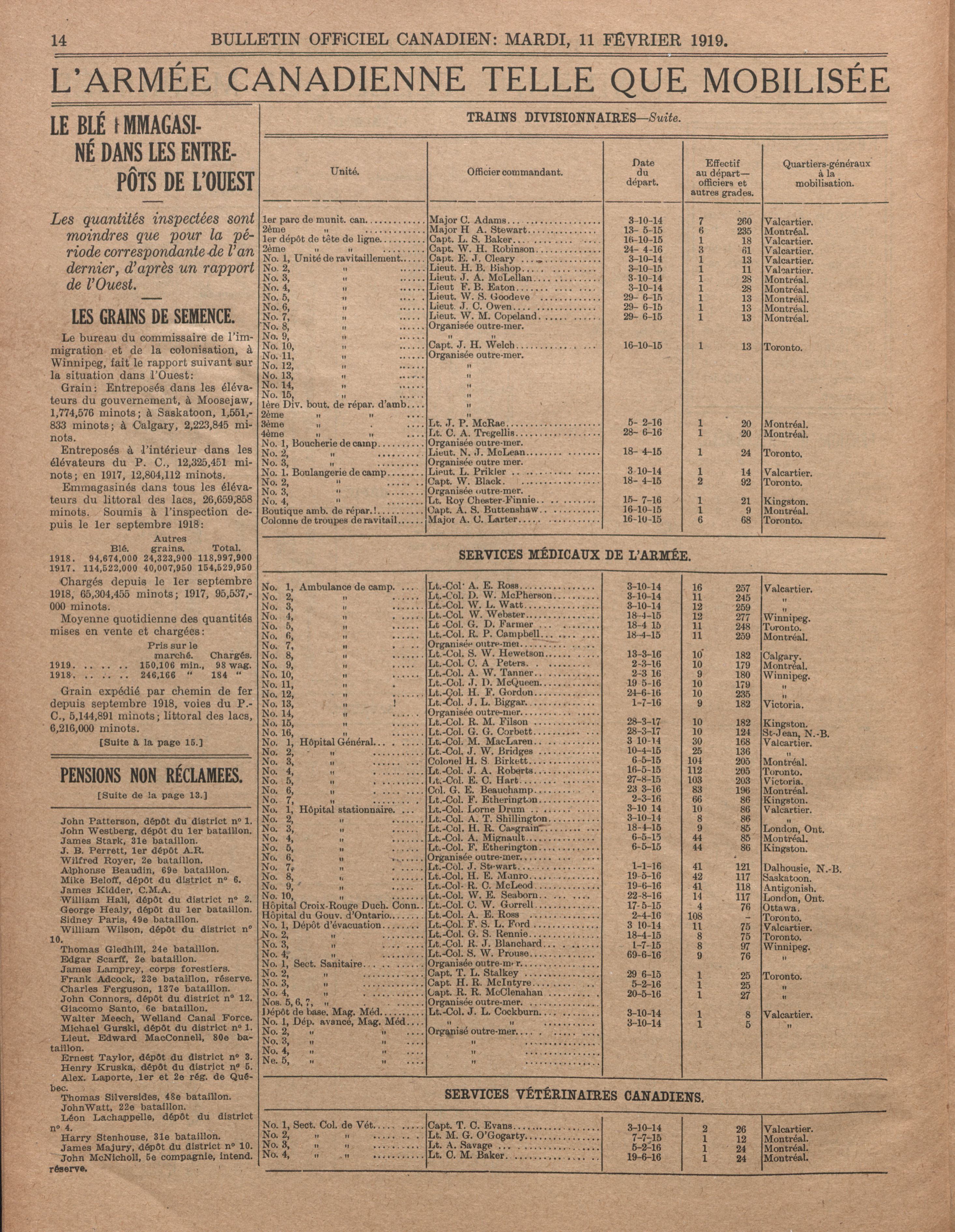 Bulletin officiel canadien : Vol. 1, no 20 (11 févr. 1918 [i.e. 1919])