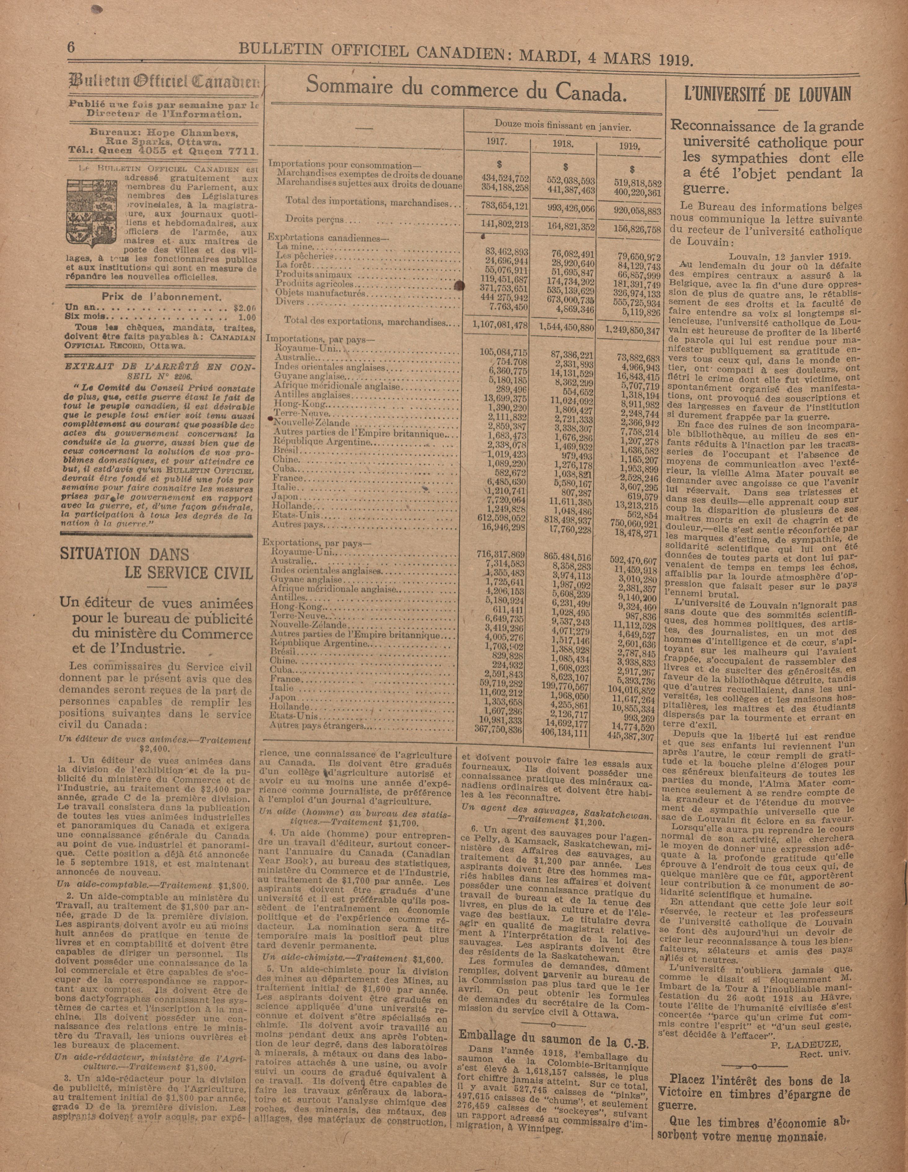 Bulletin officiel canadien : Vol. 1, no 23 (4 mars 1919)