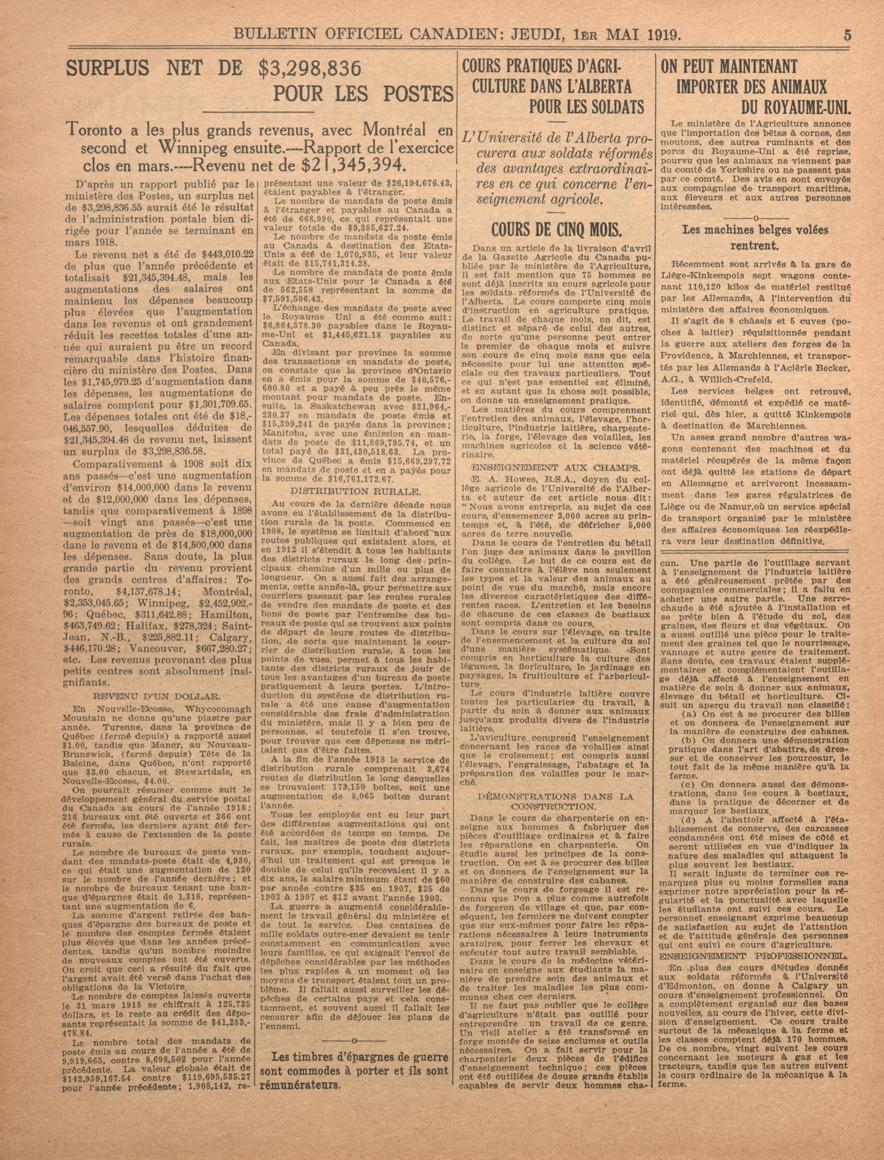 Bulletin officiel canadien : Vol. 1, no 31 (1 mai 1919)