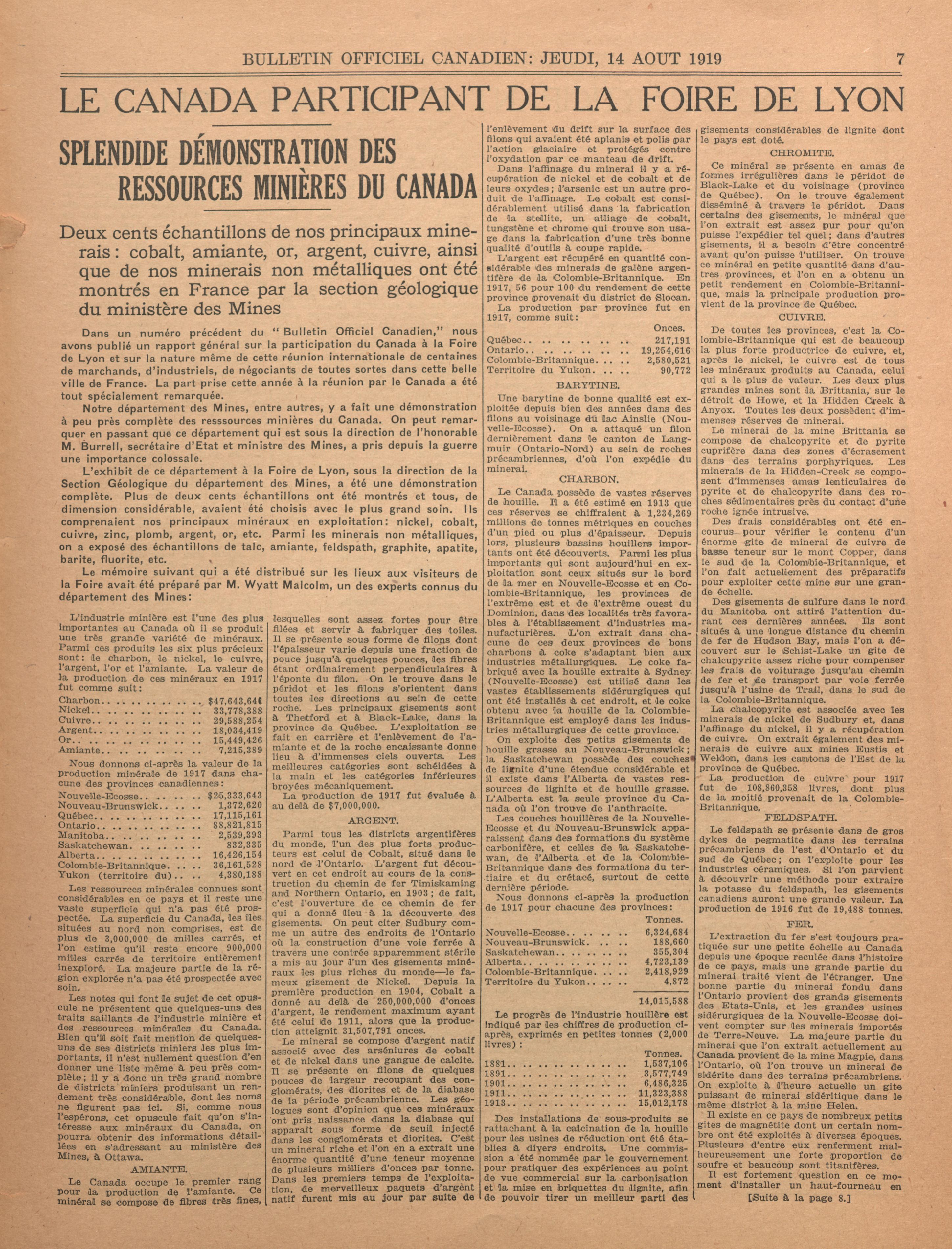 Bulletin officiel canadien : Vol. 1, no 44 (14 août 1919)