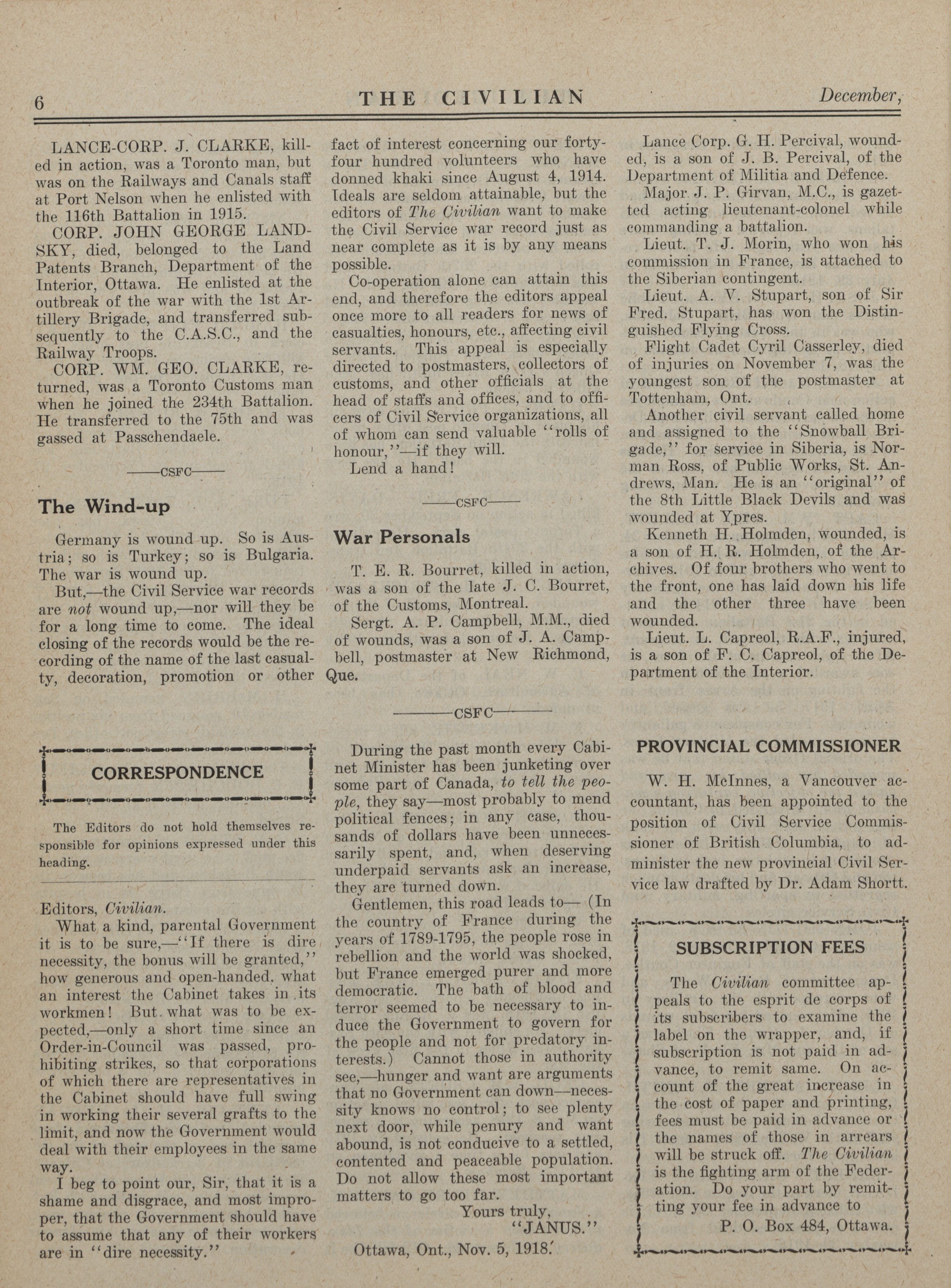The Civilian. : Vol. XI1, No. 1 (December, 1918)