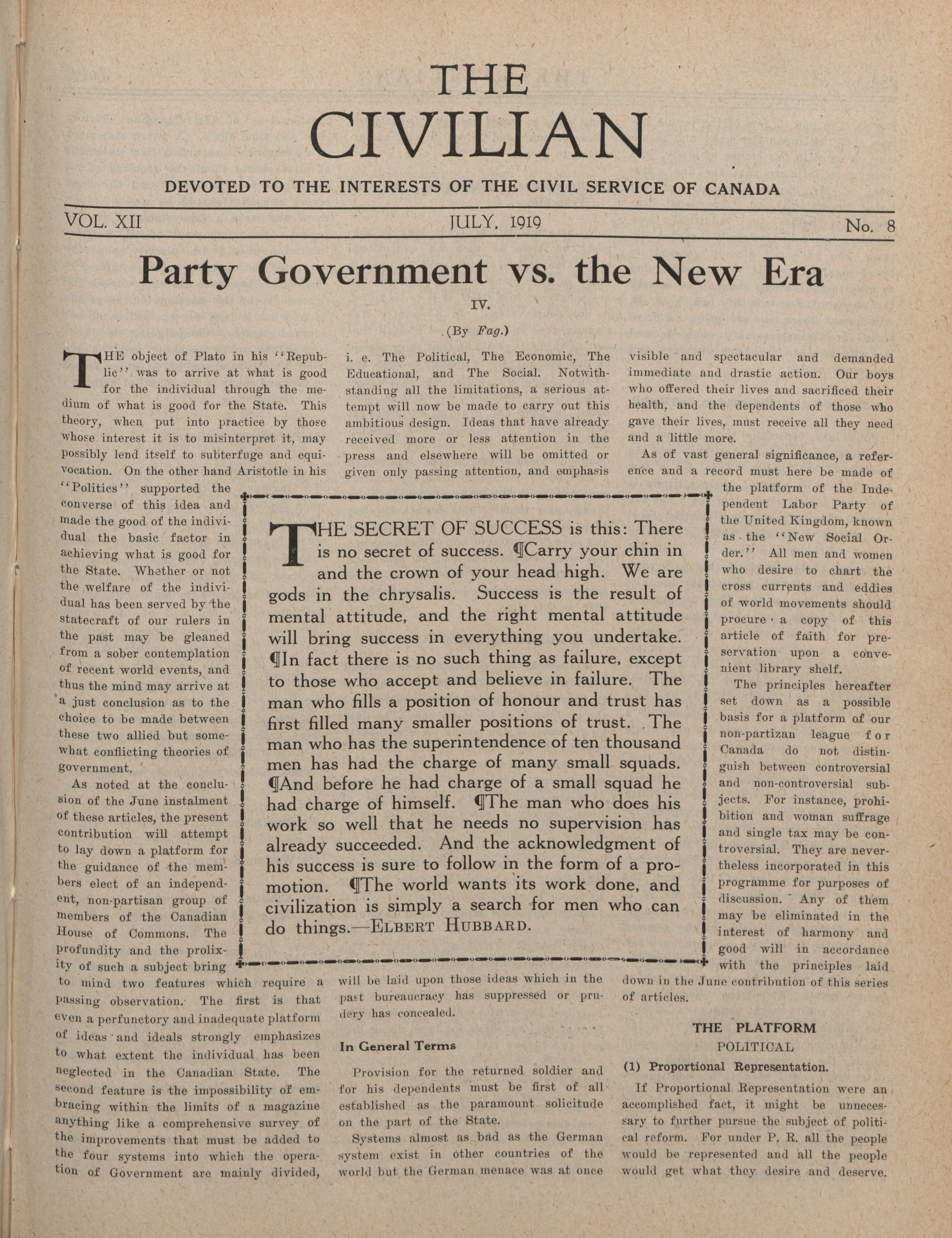 The Civilian. : Vol. XII, No. 8 (July, 1919)