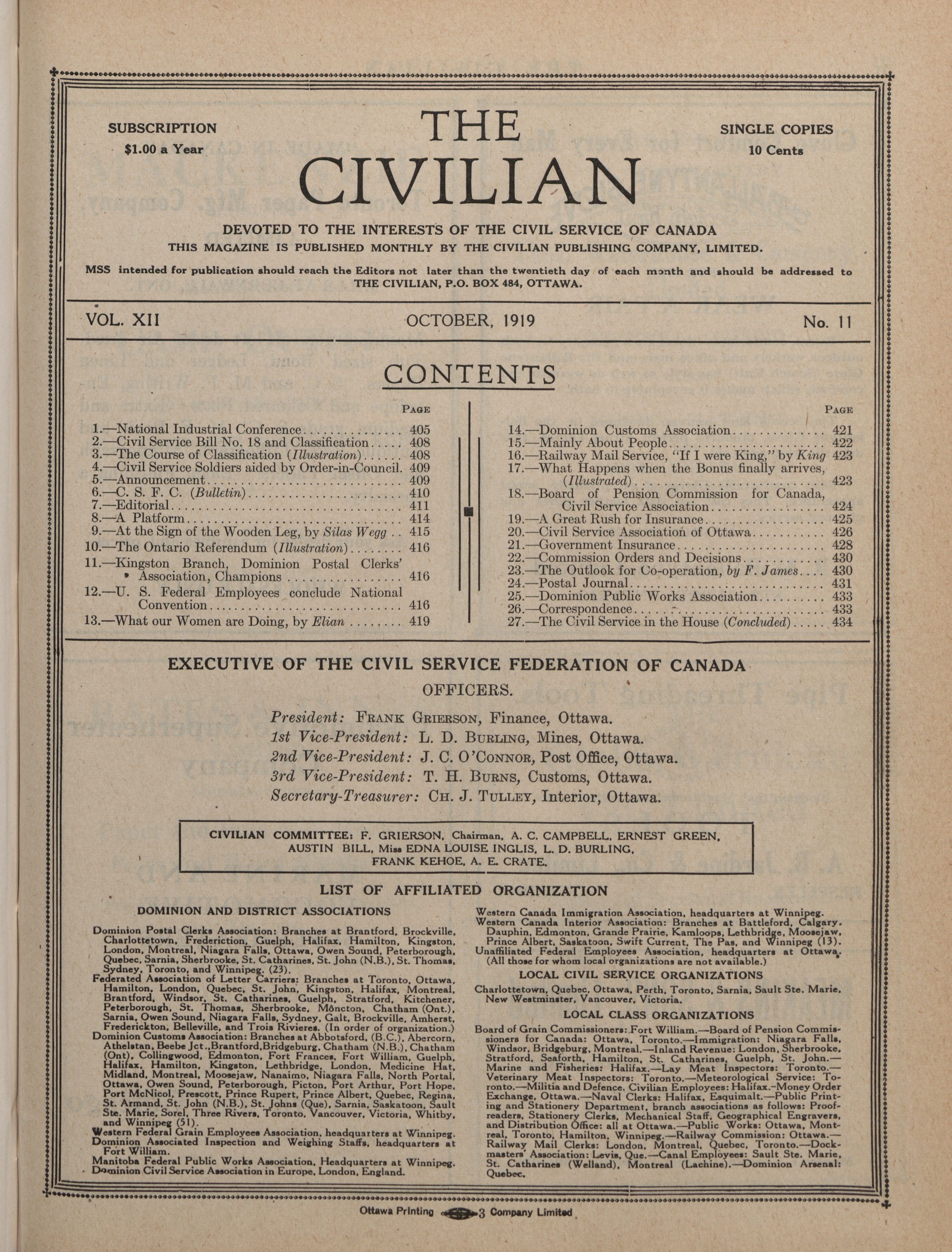 The Civilian. : Vol. XII, No. 11 (October, 1919)