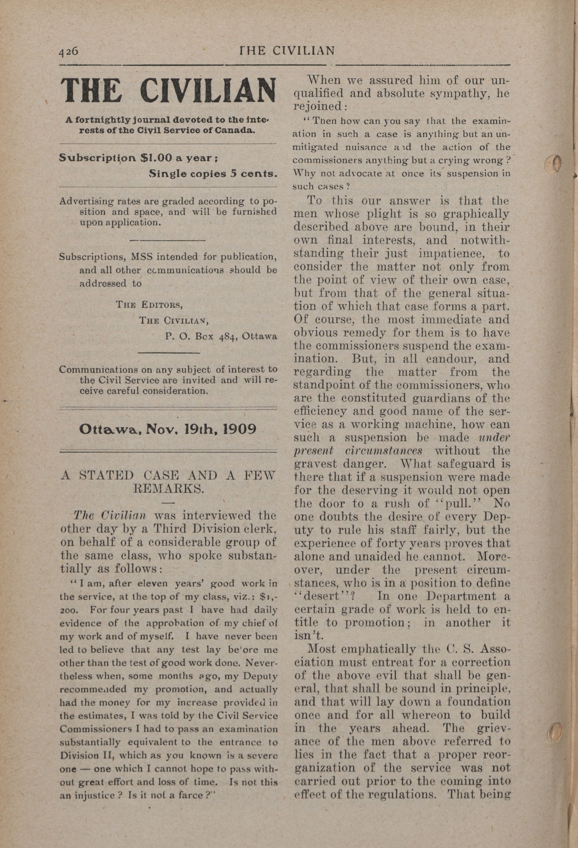 - The Civilian. : Vol. II, No. 14 [i.e. 15] (November 19th, 1909)