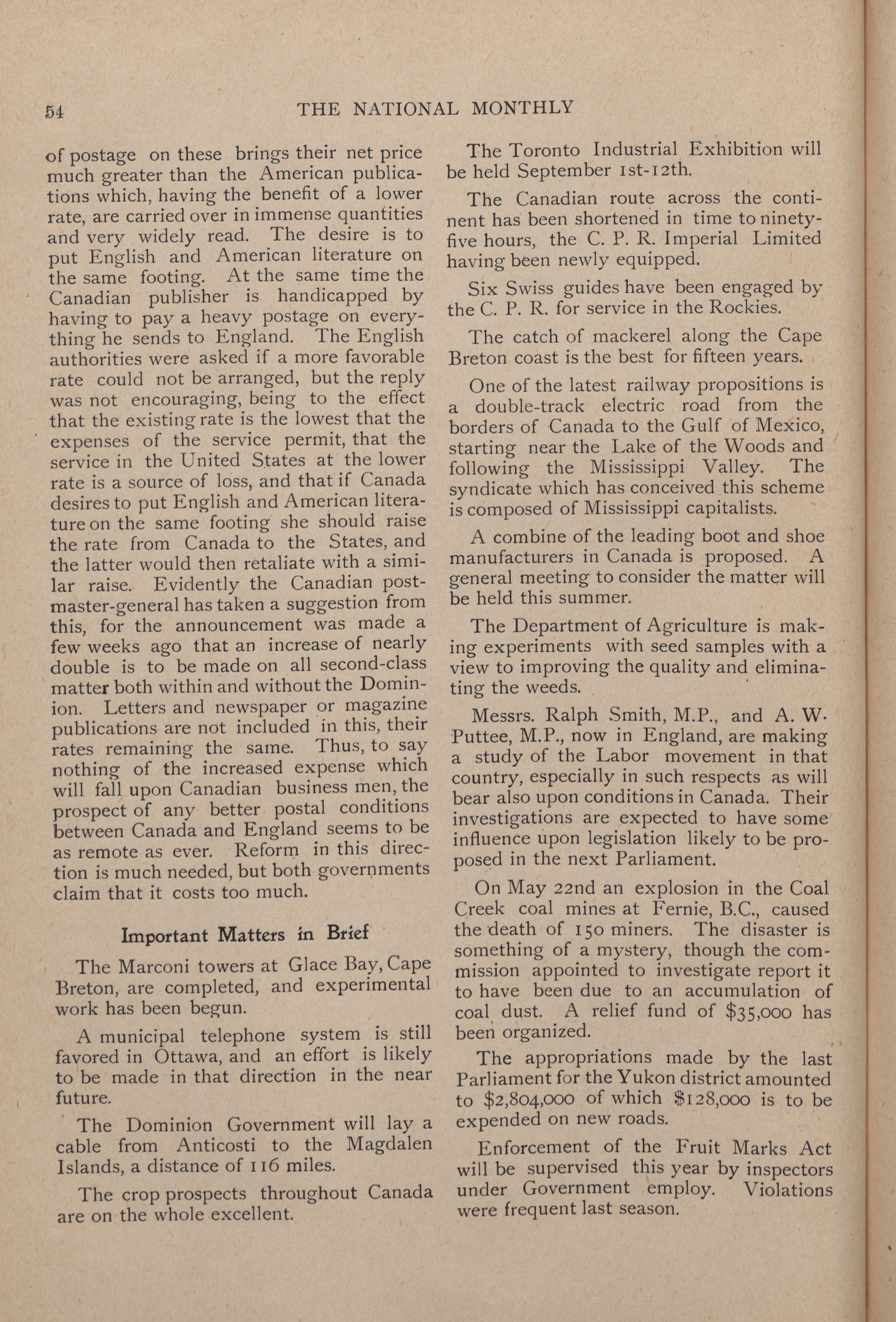 - The National monthly of Canada. : Vol. I, No. 2 (August, 1902)