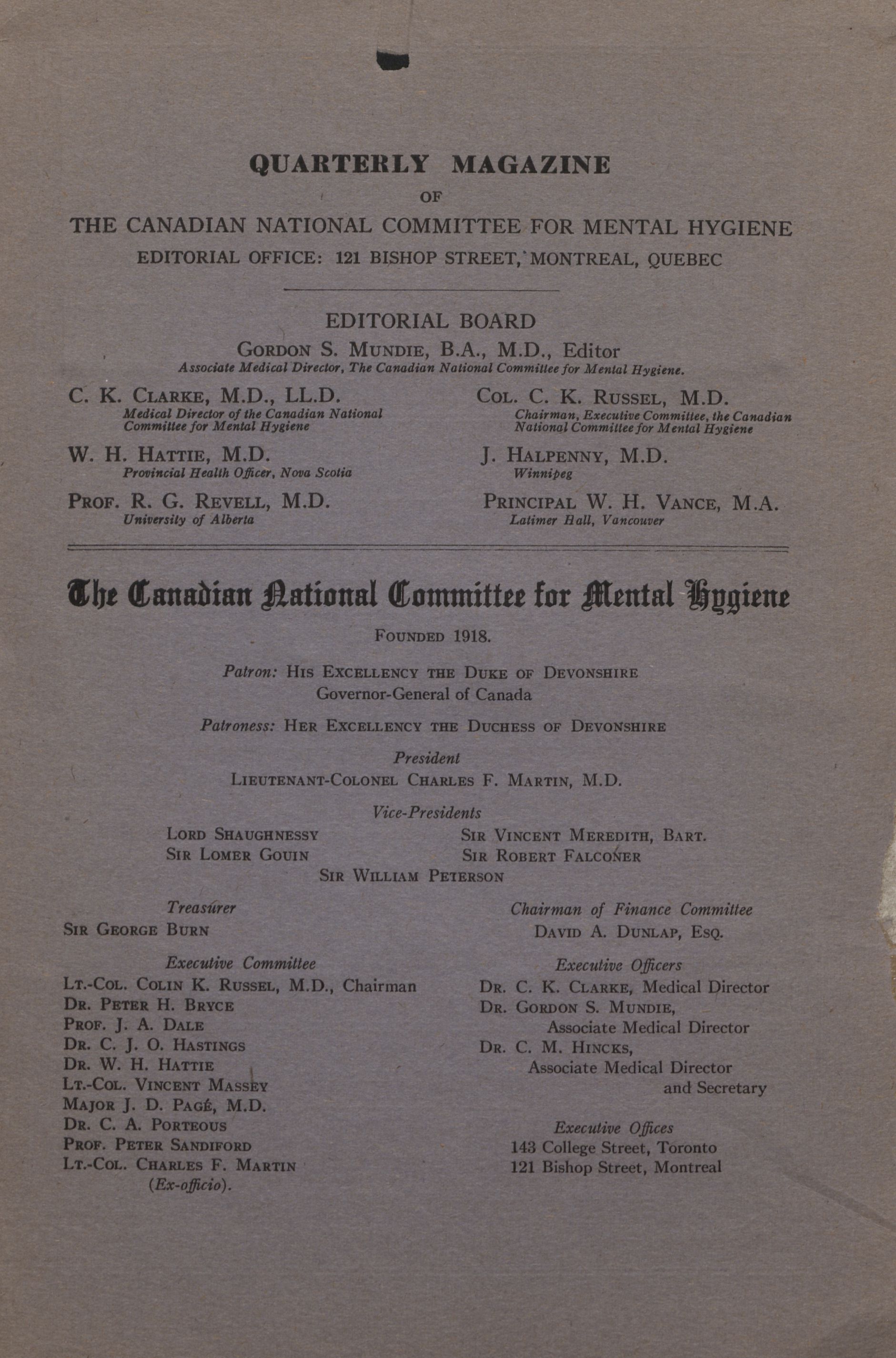 Toronto, Ontario : The Canadian National Committee for Mental Hygiene, [1919]