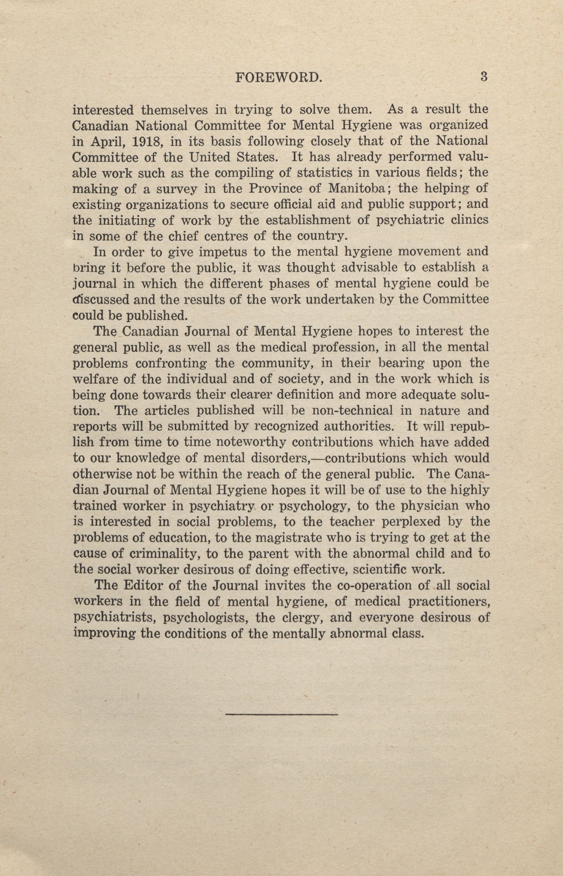 - Canadian journal of mental hygiene. : Vol. I, No. 1 (April, 1919)