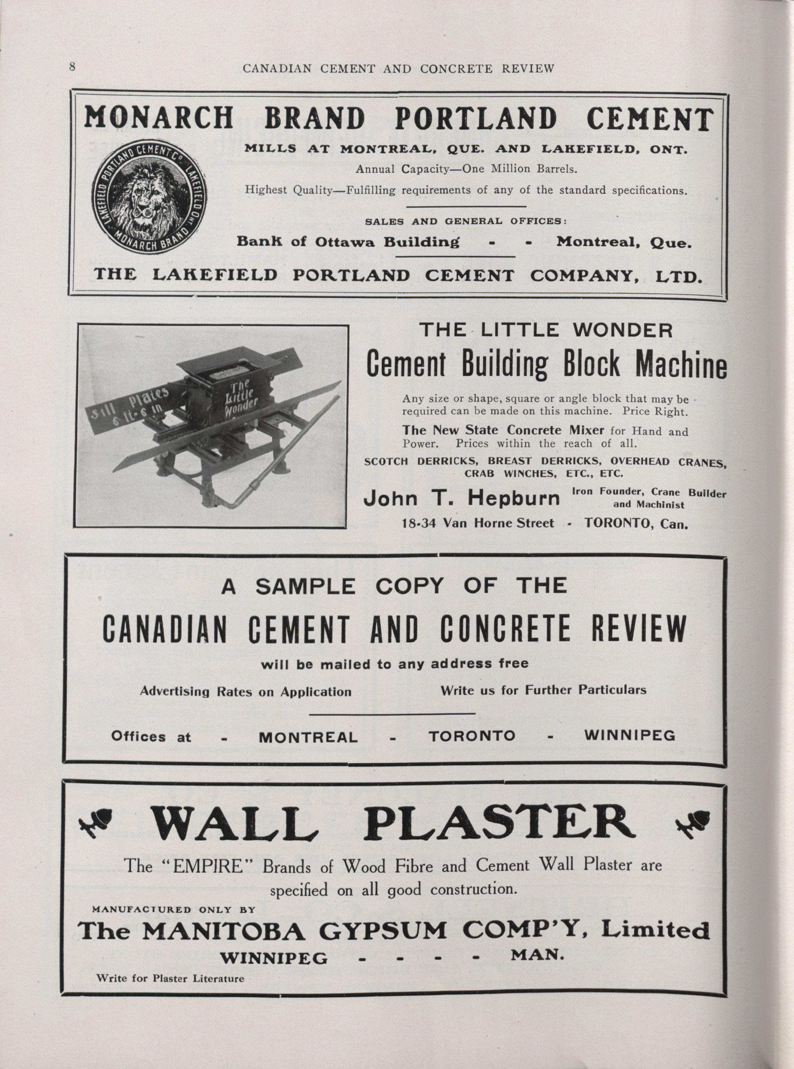 - Canadian cement and concrete review. : Volume III, Number 9 (September, 1909)