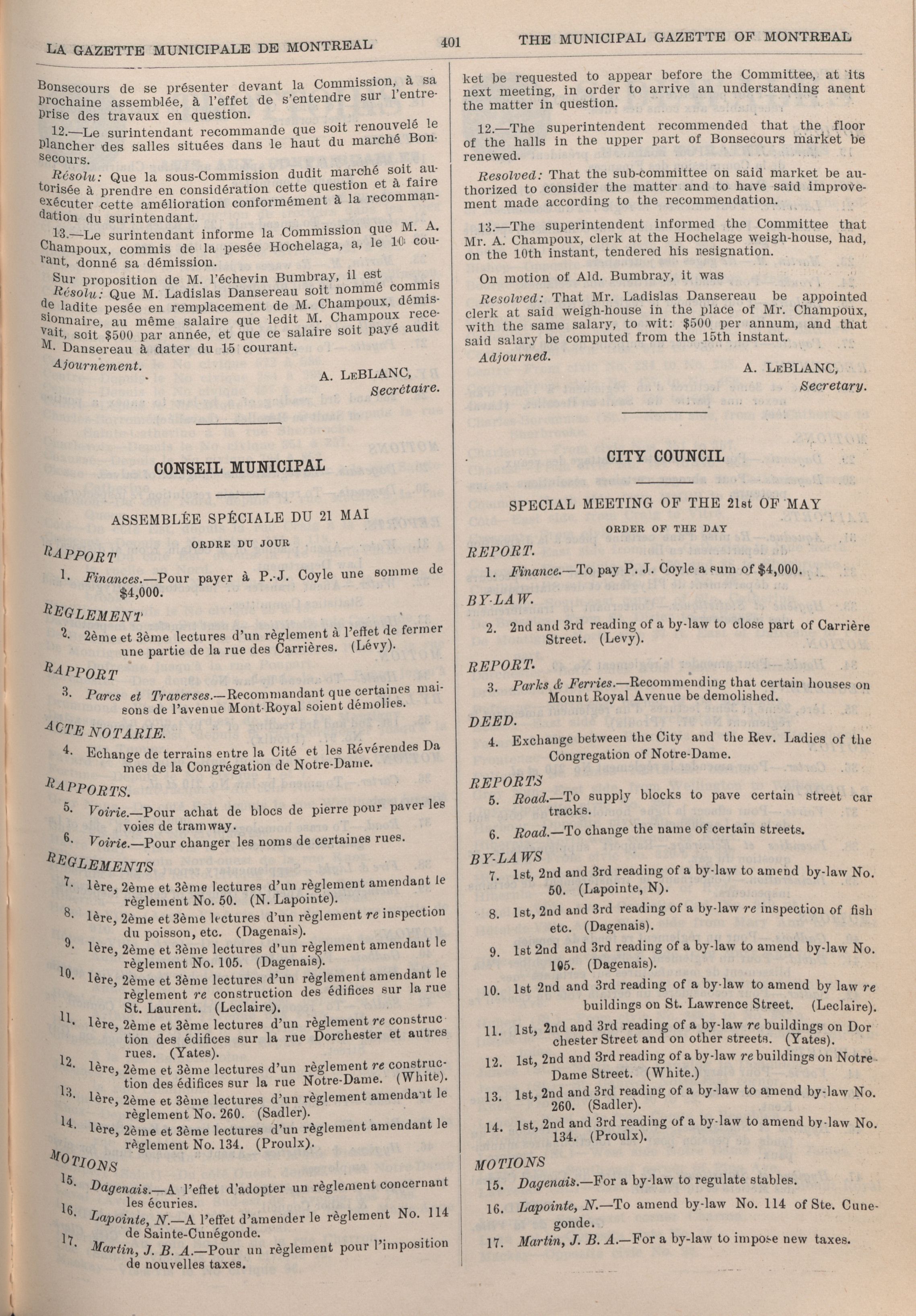 Gazette municipale de Montréal = : Troisième année/Third year, No. 16 (21 Mai/May 1906)