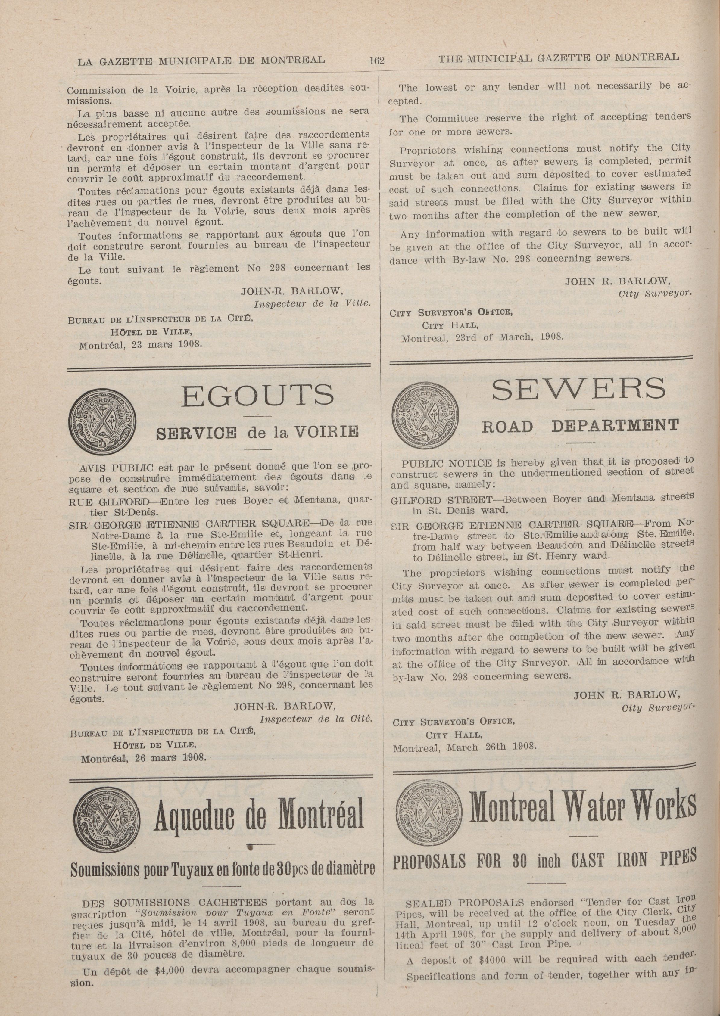 Gazette municipale de Montréal = : Cinquième année/Fifth year, No 9 (30 Mars/March 1908)