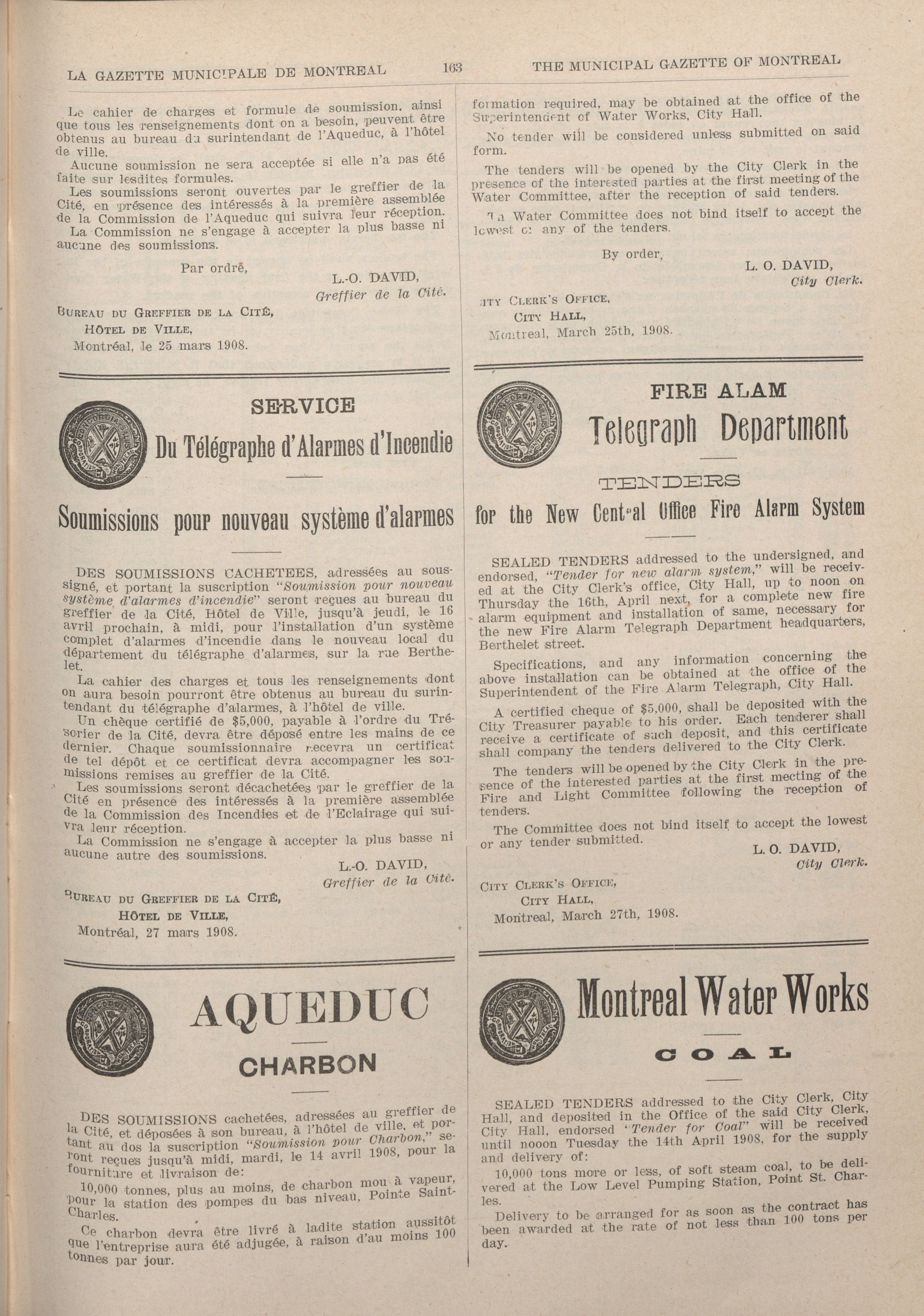Gazette municipale de Montréal = : Cinquième année/Fifth year, No 9 (30 Mars/March 1908)