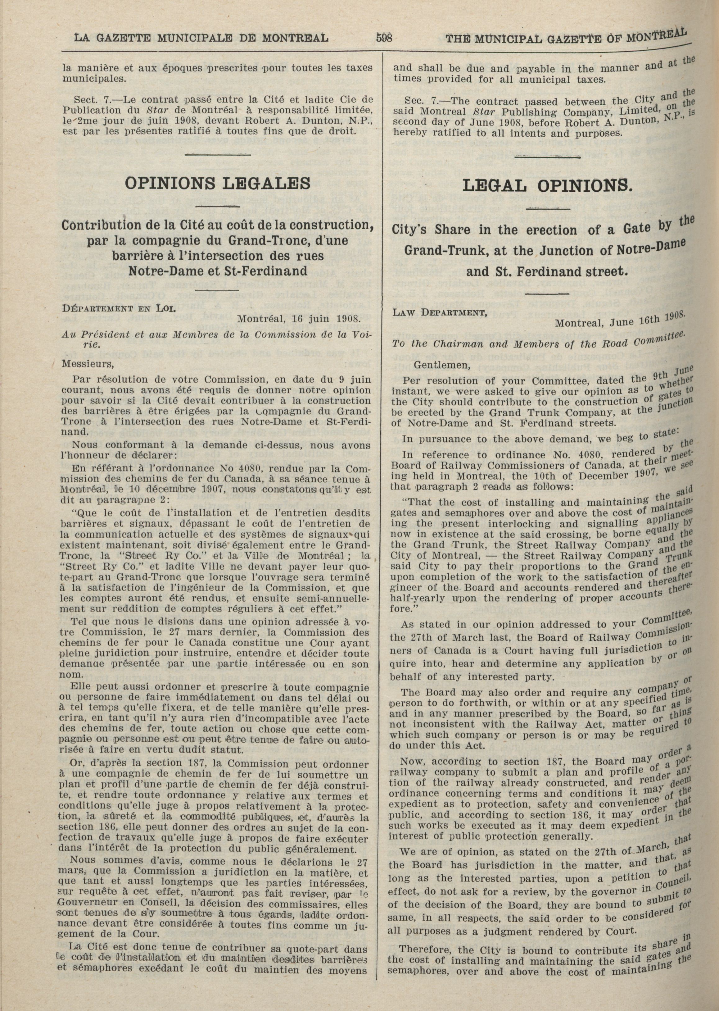Gazette municipale de Montréal = : Cinquième année/Fifth year, No 22 (29 Juin/June 1908)