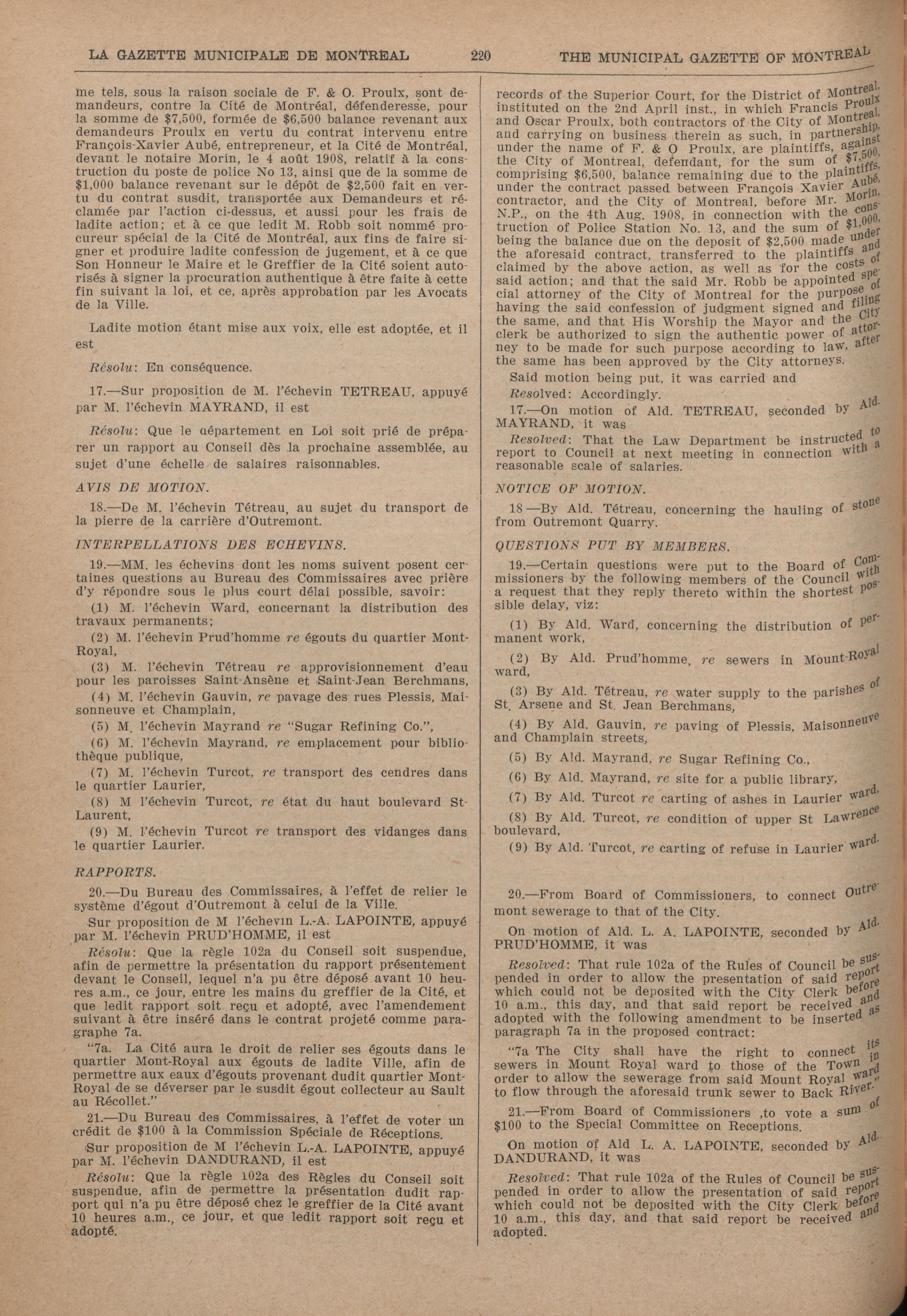 Gazette municipale de Montréal = : Septième année/Seventh year, No 11 (18 Avril/April 1910)