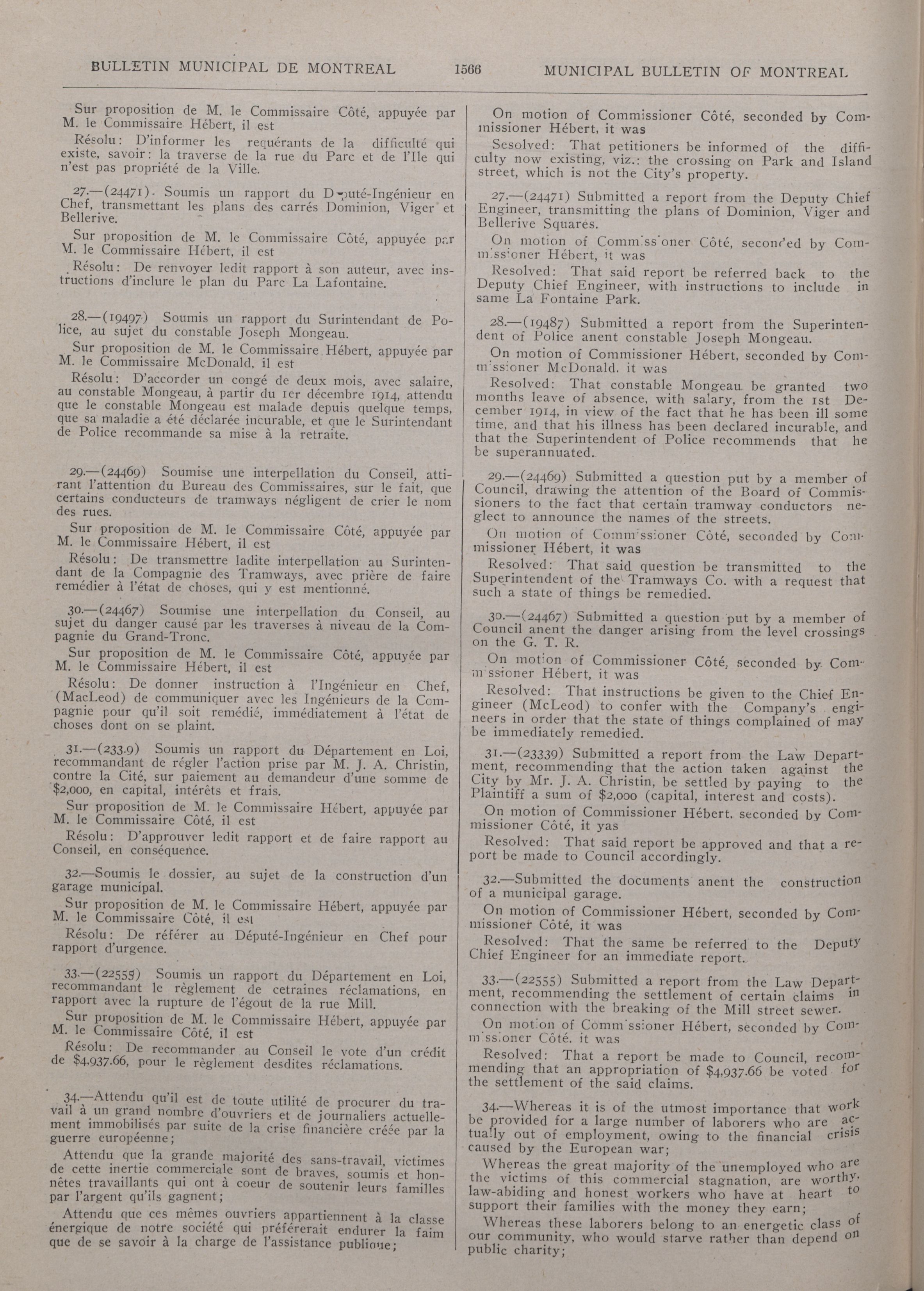 Municipal bulletin of the city of Montreal = : Deuxième Année/Second Year, No. 52 (26 Décembre/December 1914)