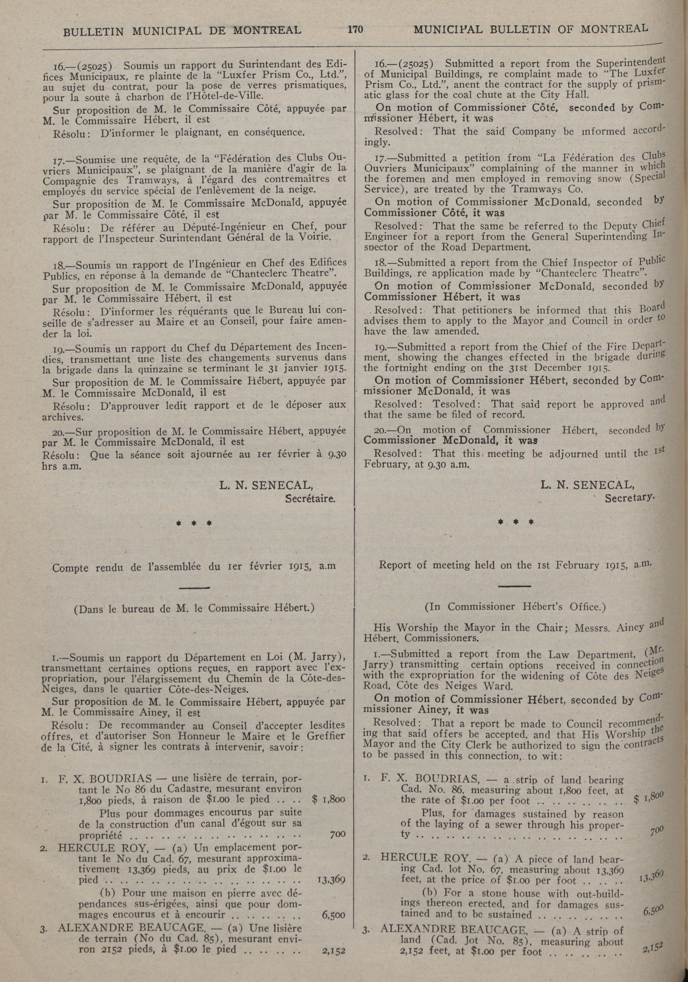 Municipal bulletin of the city of Montreal = : Troisième Année/Third Year, No. 6 (6 Février/February 1915)
