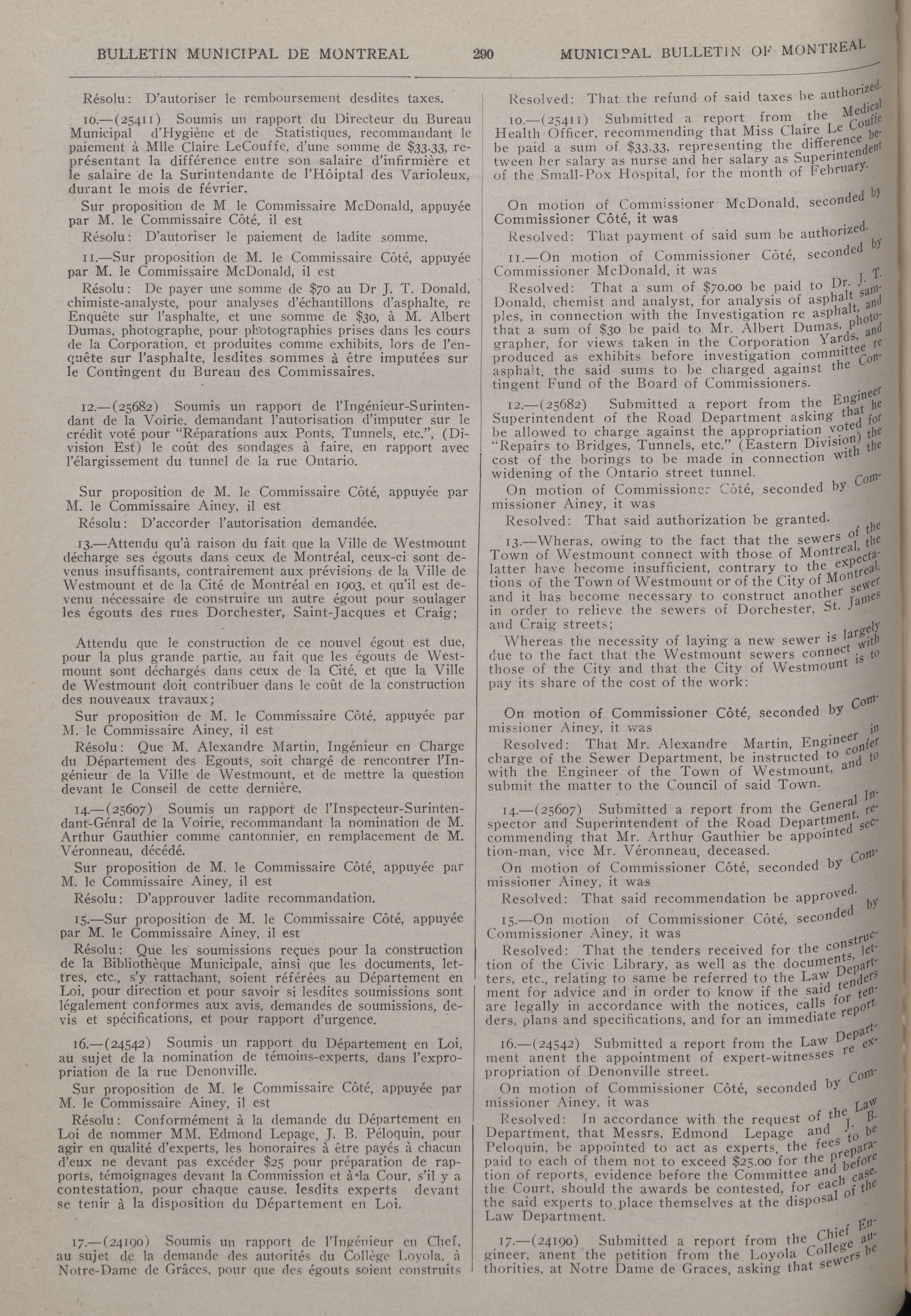 Municipal bulletin of the city of Montreal = : Troisième Année/Third Year, No. 11 (13 Mars/March 1915)