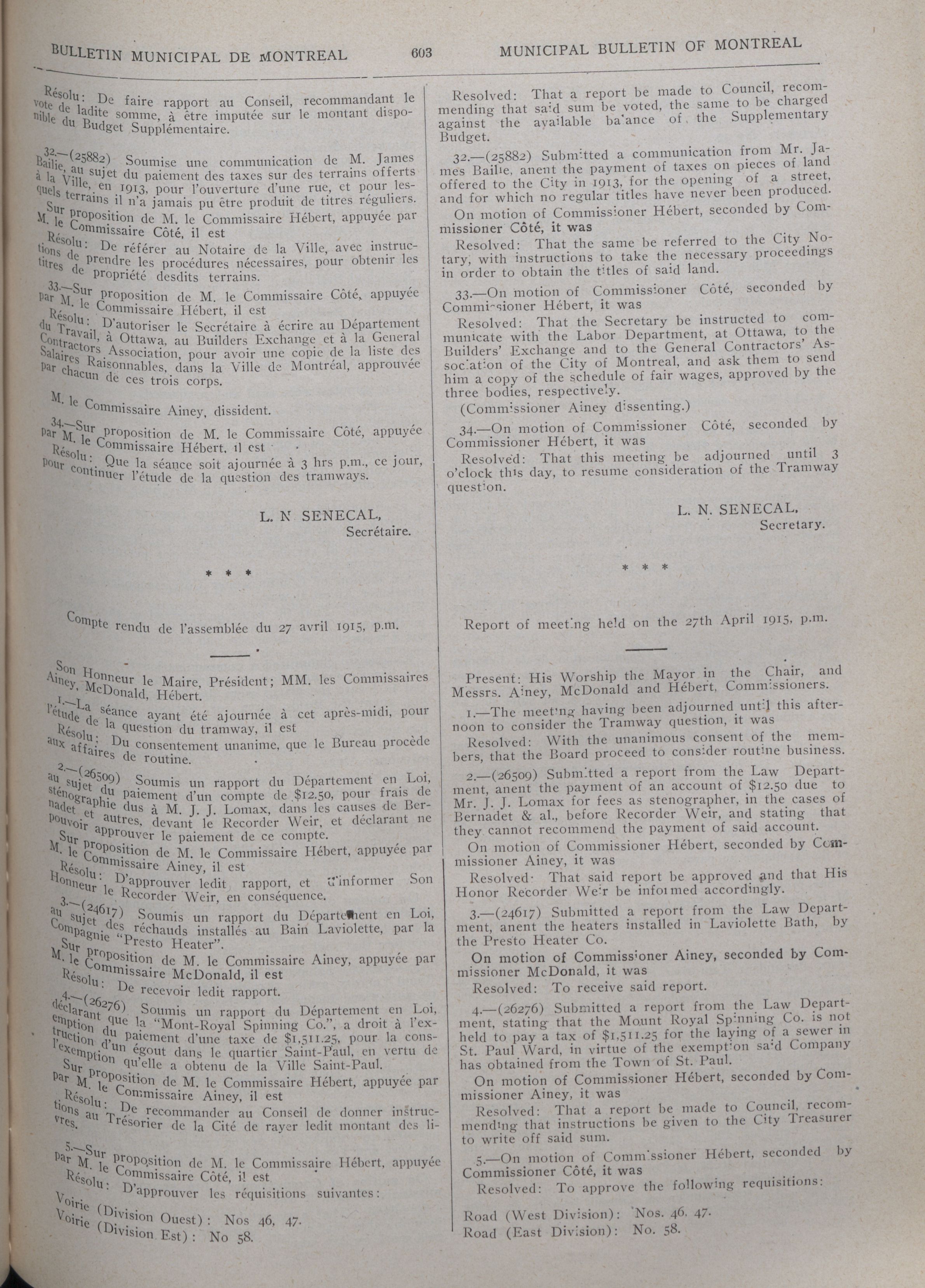 Municipal bulletin of the city of Montreal = : Troisième Année/Third Year, No. 20 (15 Mai/May 1915)