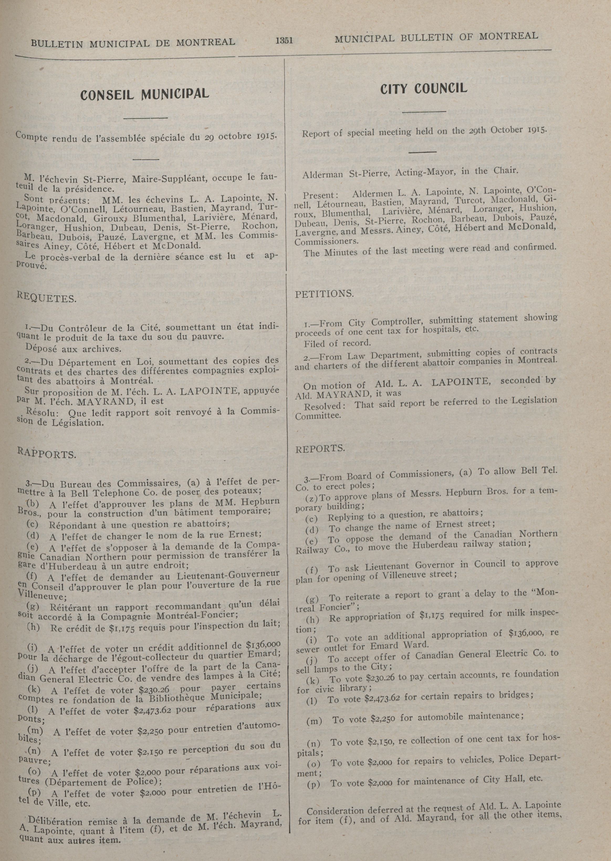 Municipal bulletin of the city of Montreal = : Troisième Année/Third Year, No. 45 (6 Novembre/November 1915)