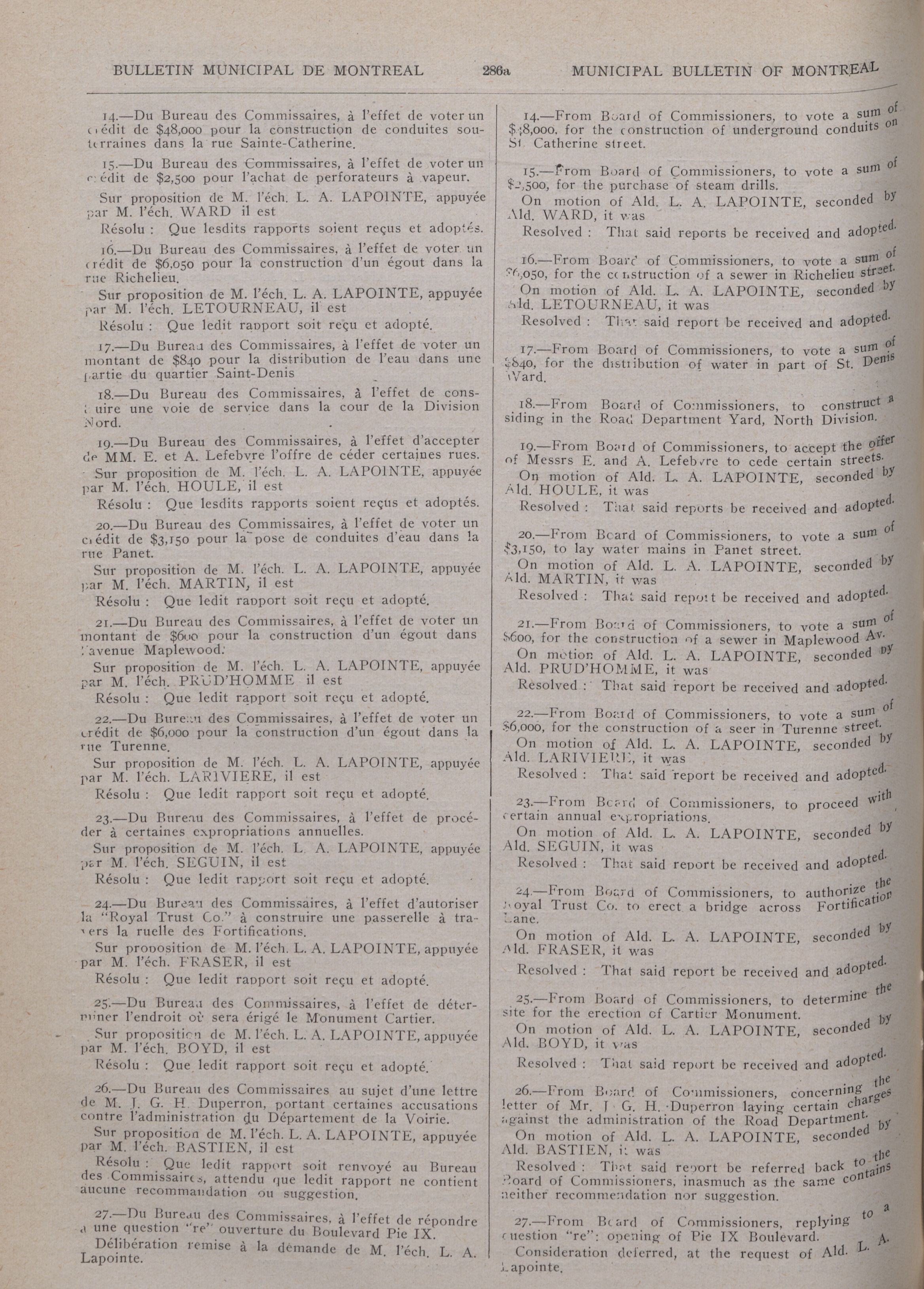 Municipal bulletin of the city of Montreal = : Première Année/First Year, No. 35 (30 Août/August 1913)