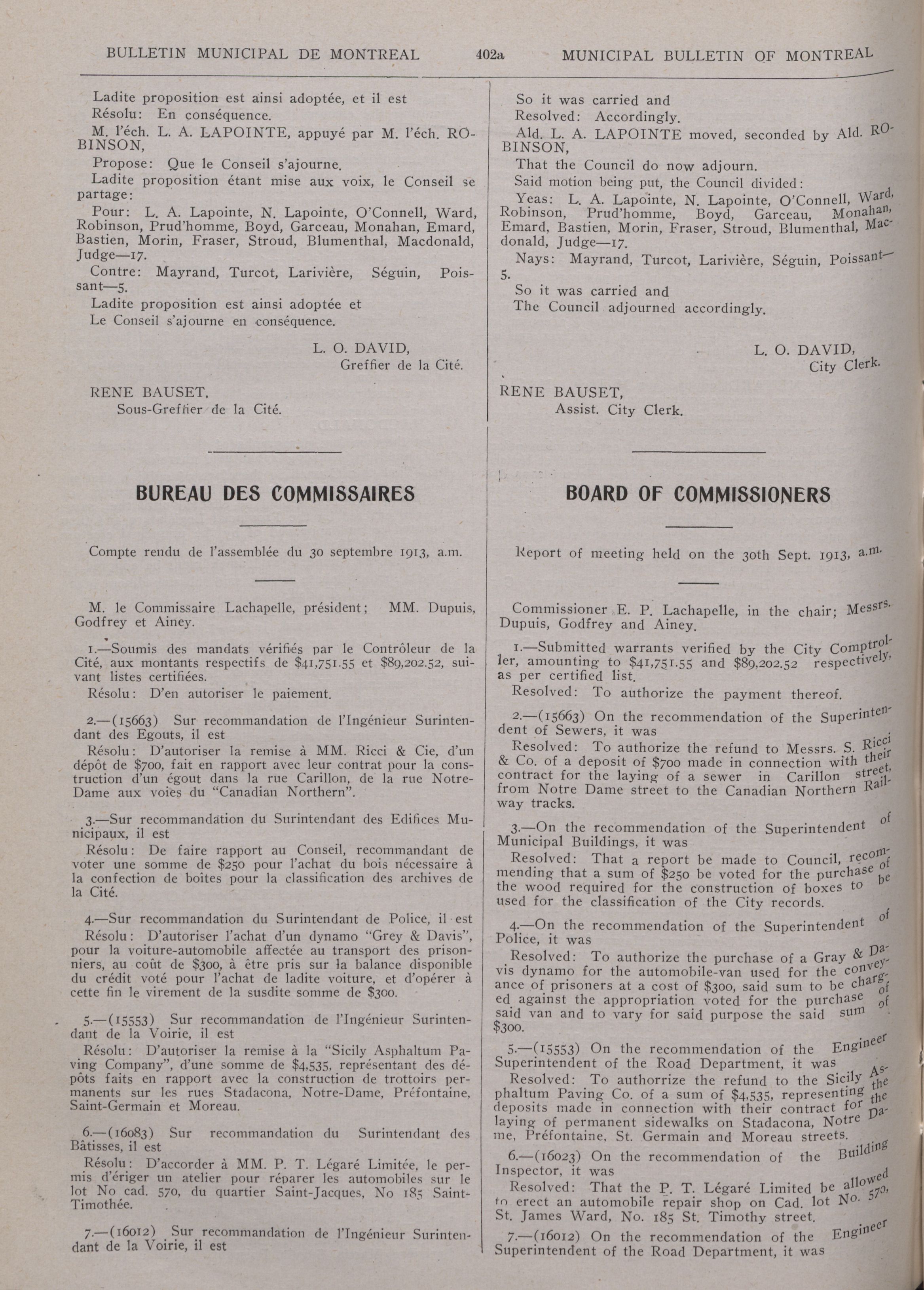 Municipal bulletin of the city of Montreal = : Première Année/First Year, No. 40 (4 Octobre/October 1913)