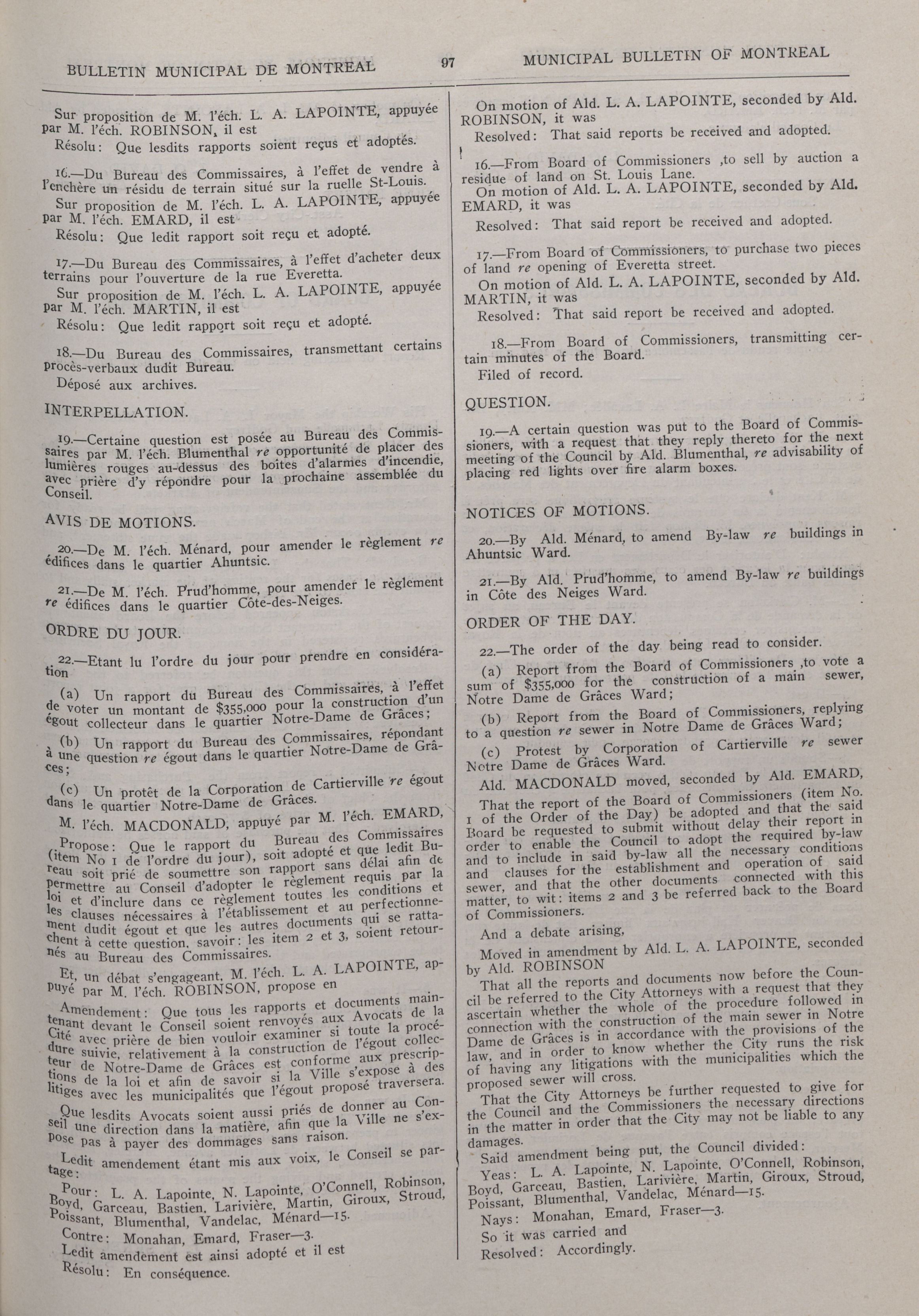 Municipal bulletin of the city of Montreal = : Première Année/First Year, No. 6 (8 Février/February 1913)