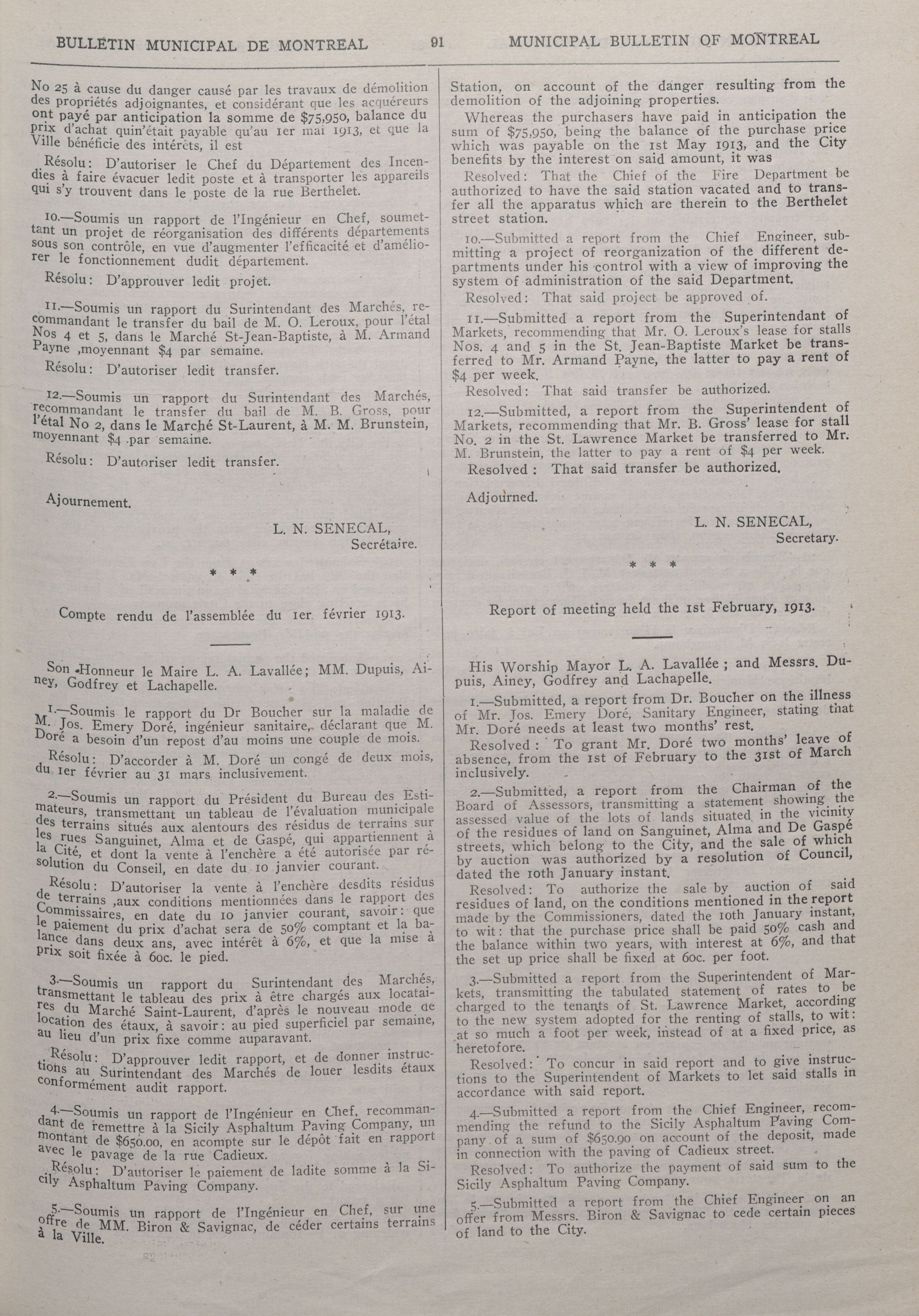 Municipal bulletin of the city of Montreal = : Première Année/First Year, No. 6 (8 Février/February 1913)
