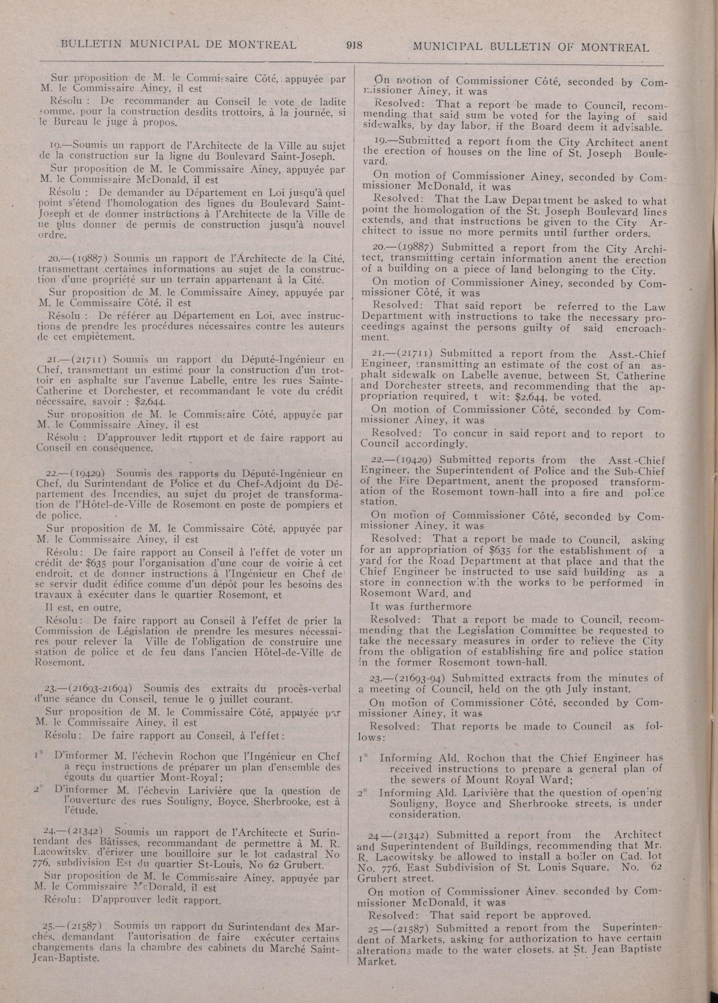 Municipal bulletin of the city of Montreal = : Deuxième Année/Second Year, No. 30 (25 Juillet/July 1914)
