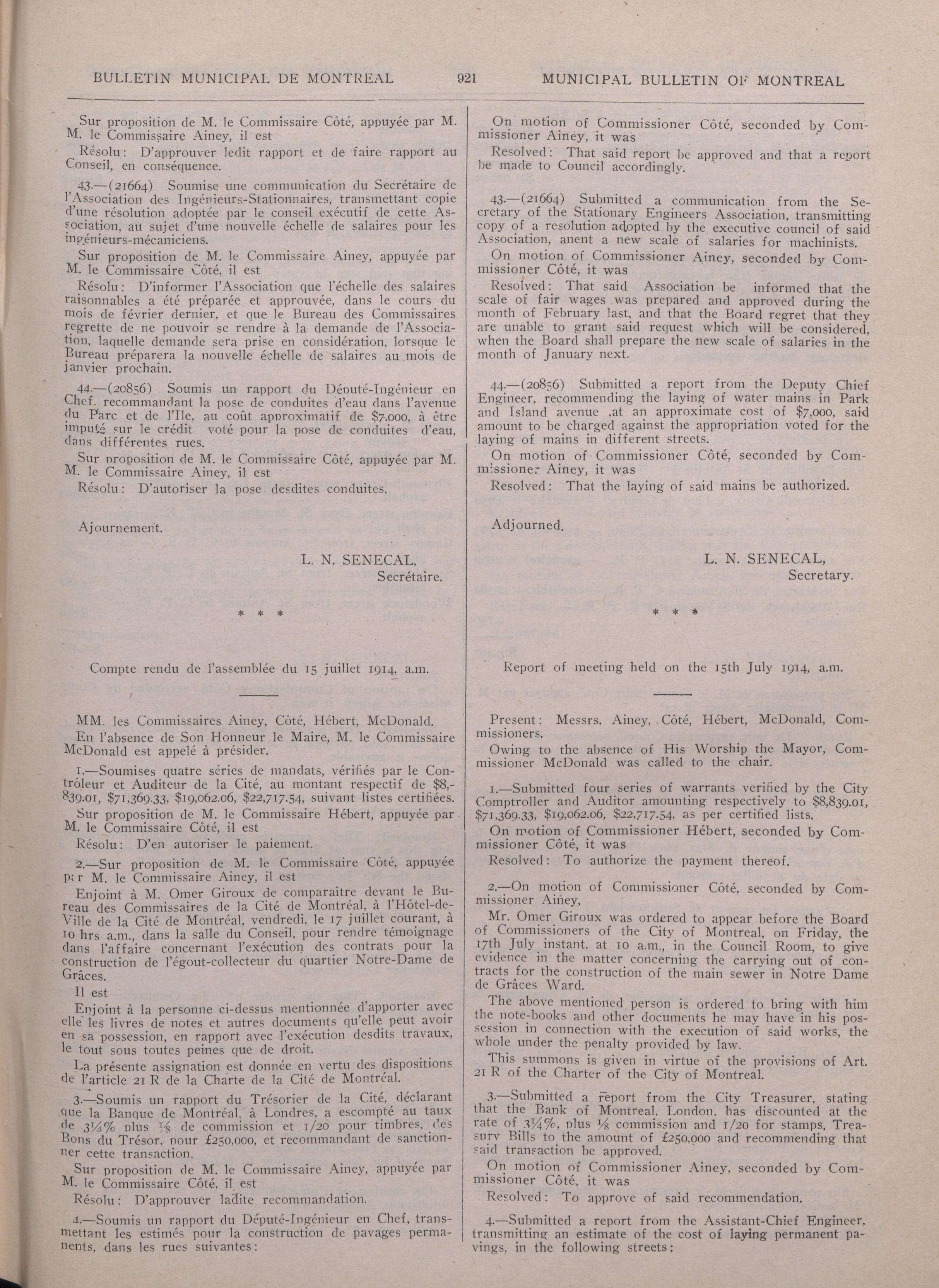 Municipal bulletin of the city of Montreal = : Deuxième Année/Second Year, No. 30 (25 Juillet/July 1914)