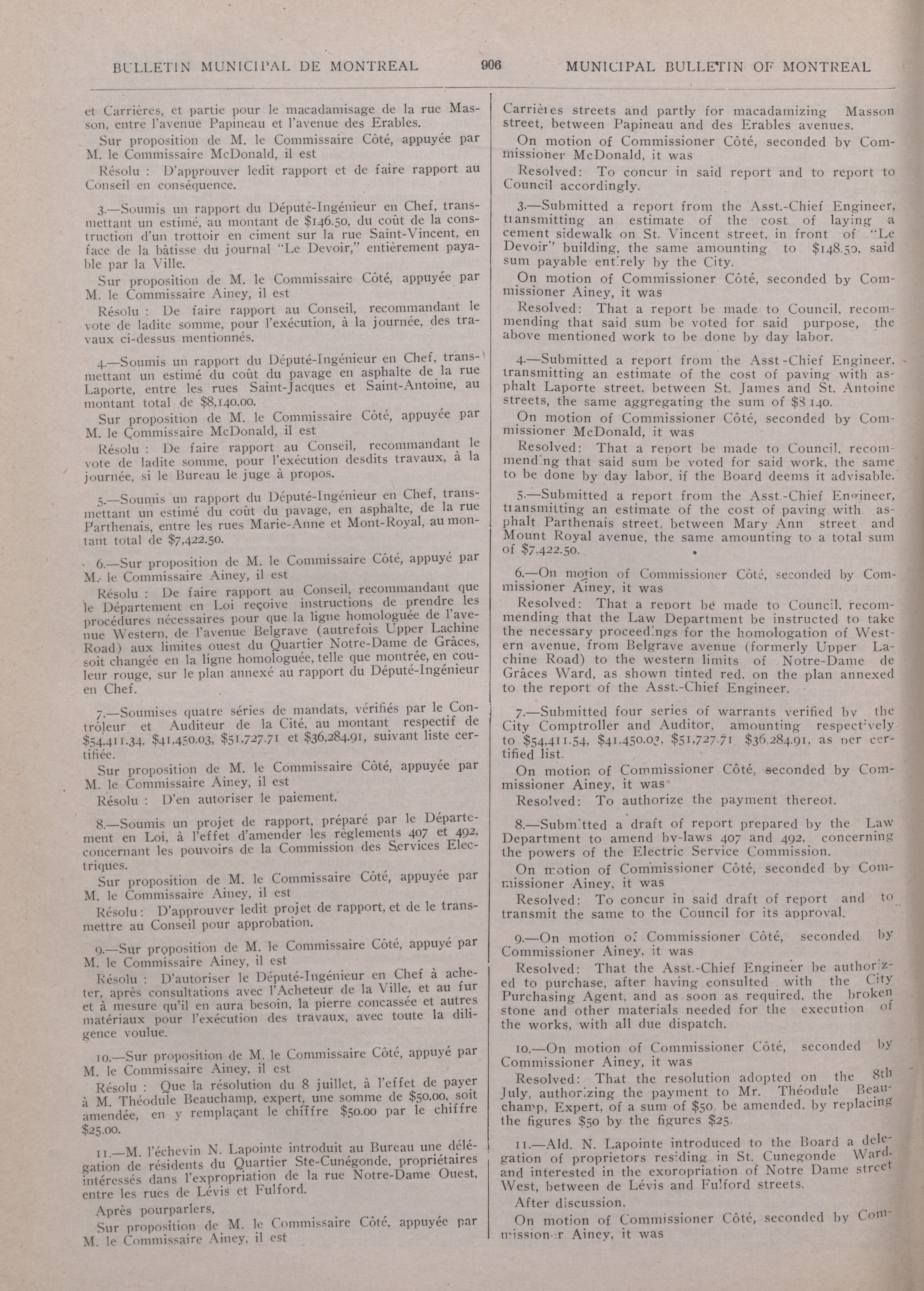 Municipal bulletin of the city of Montreal = : Deuxième Année/Second Year, No. 30 (25 Juillet/July 1914)