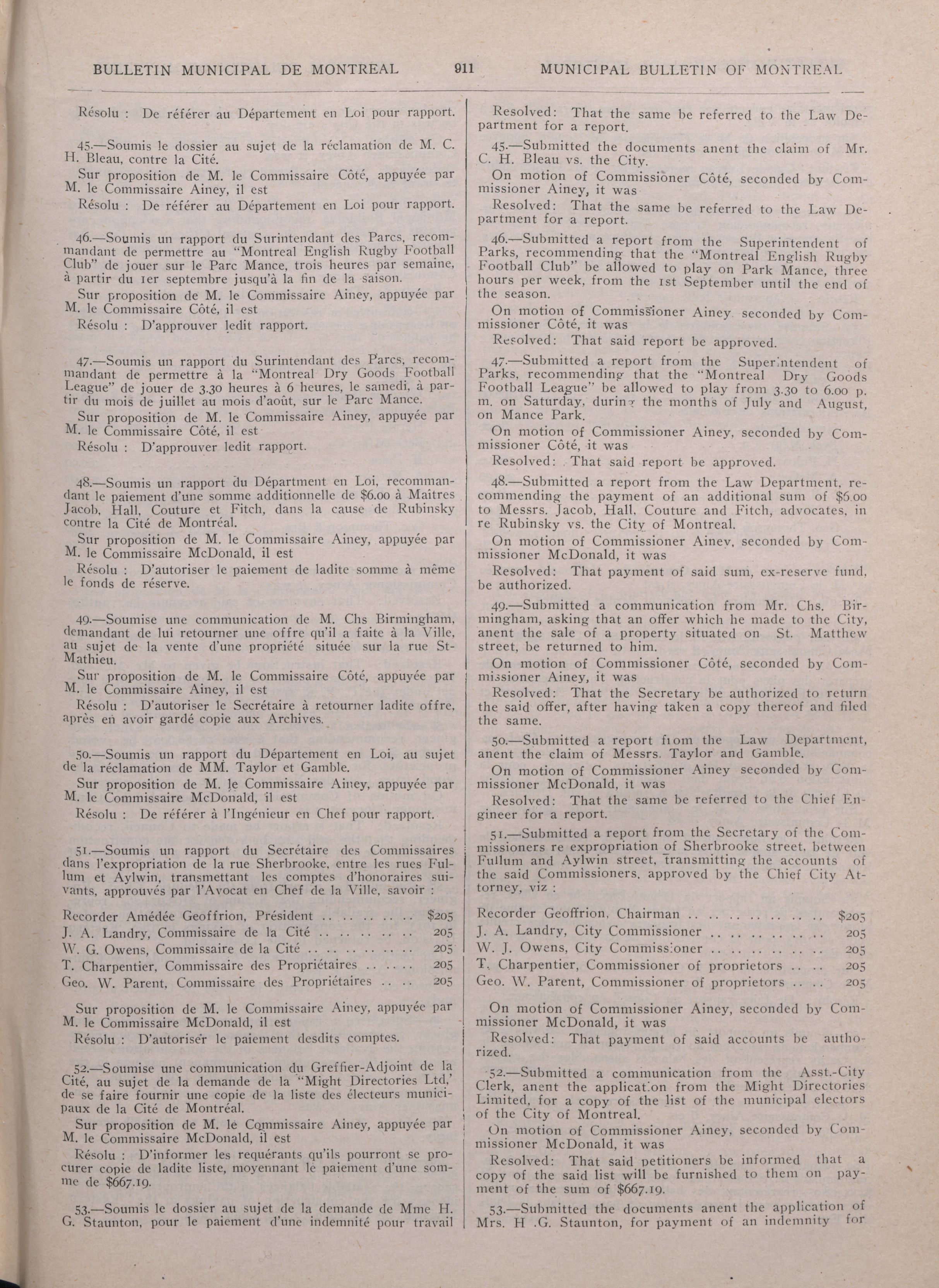 - Municipal bulletin of the city of Montreal =