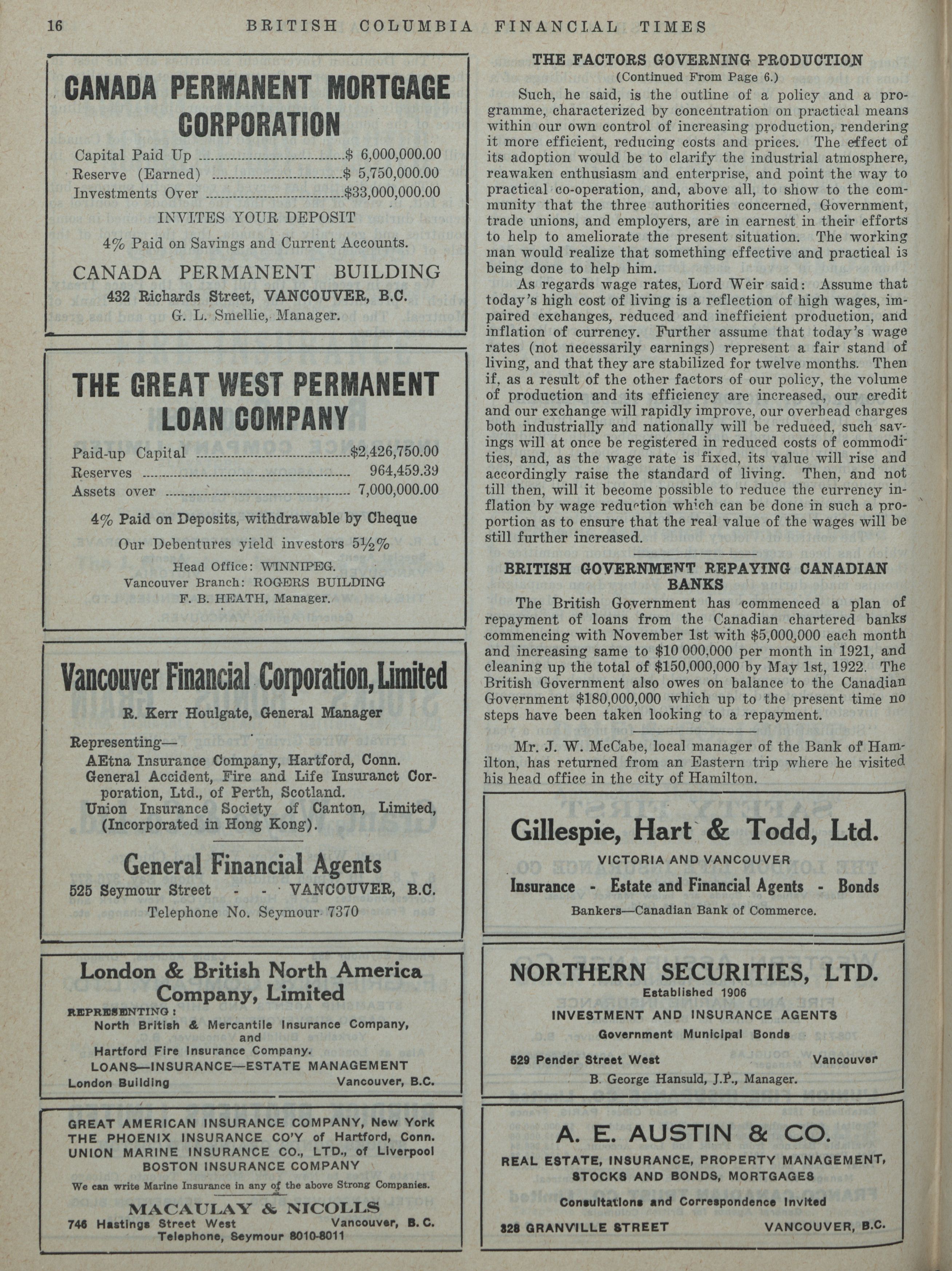 British Columbia Financial Times. : Vol. VII, No. 23 (December 4, 1920)