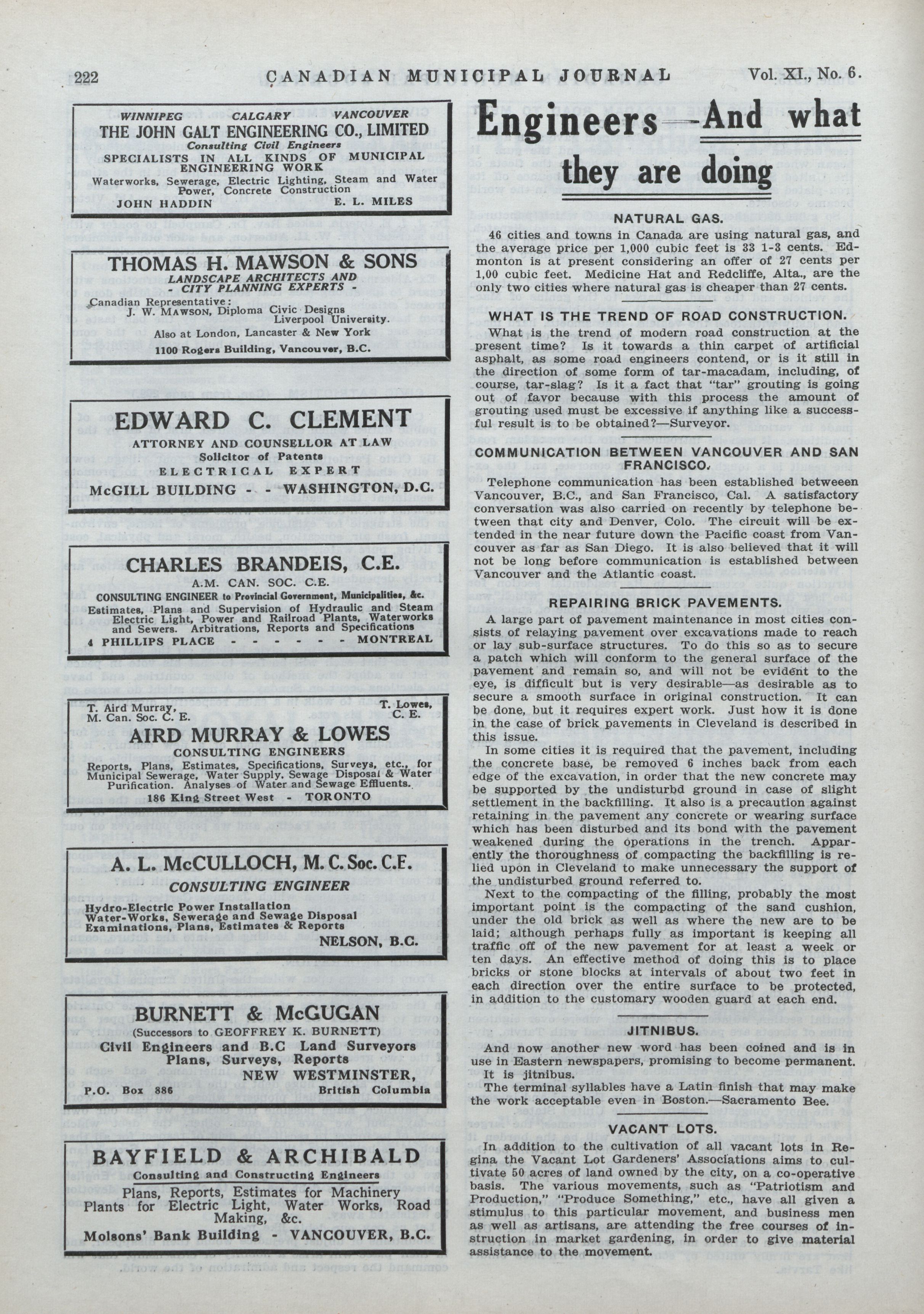 The Canadian Municipal Journal. : Vol. XI, No 6 (June, 1915)