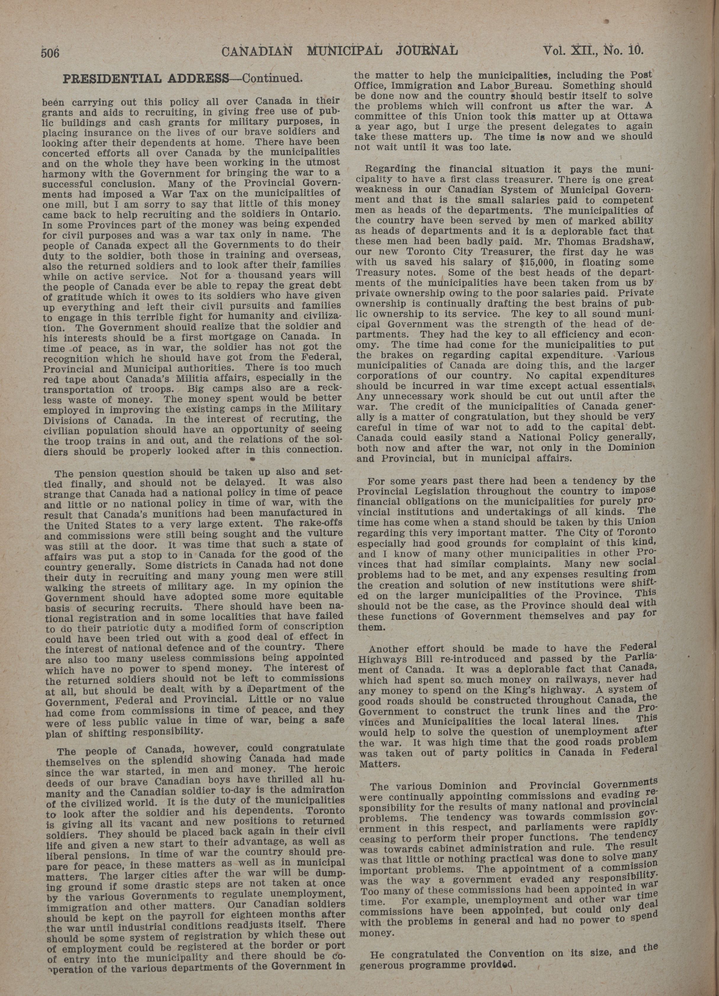 - The Canadian Municipal Journal. : Vol. XII, No 10 (October, 1916)