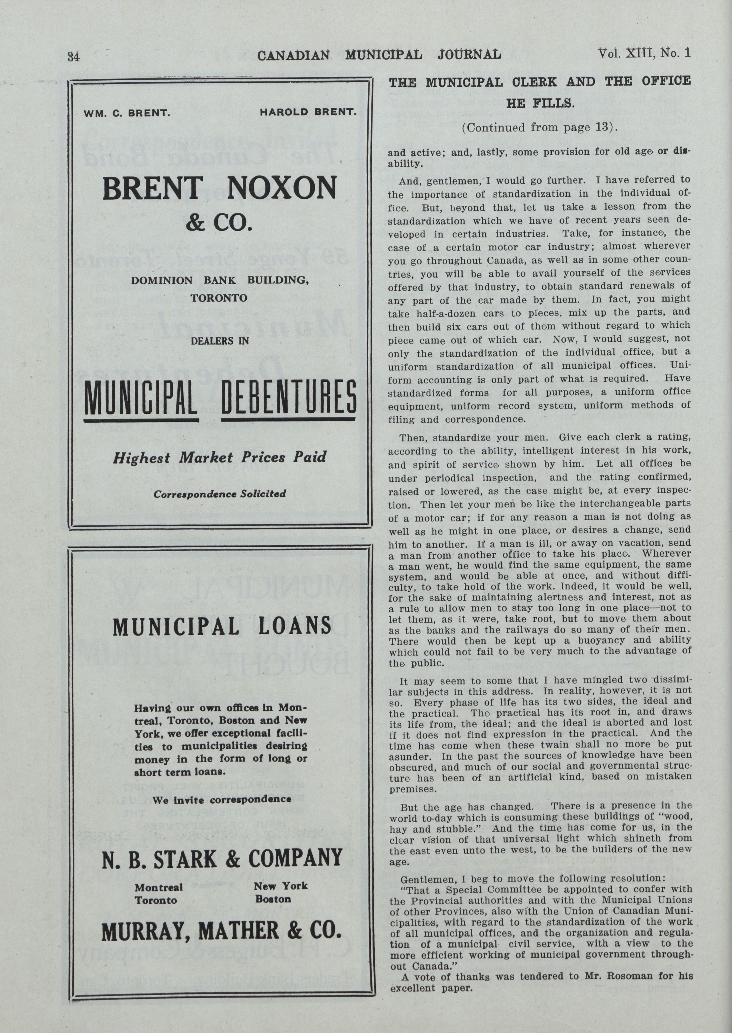 - The Canadian Municipal Journal. : Vol. XIII, No. 1 (January, 1917)