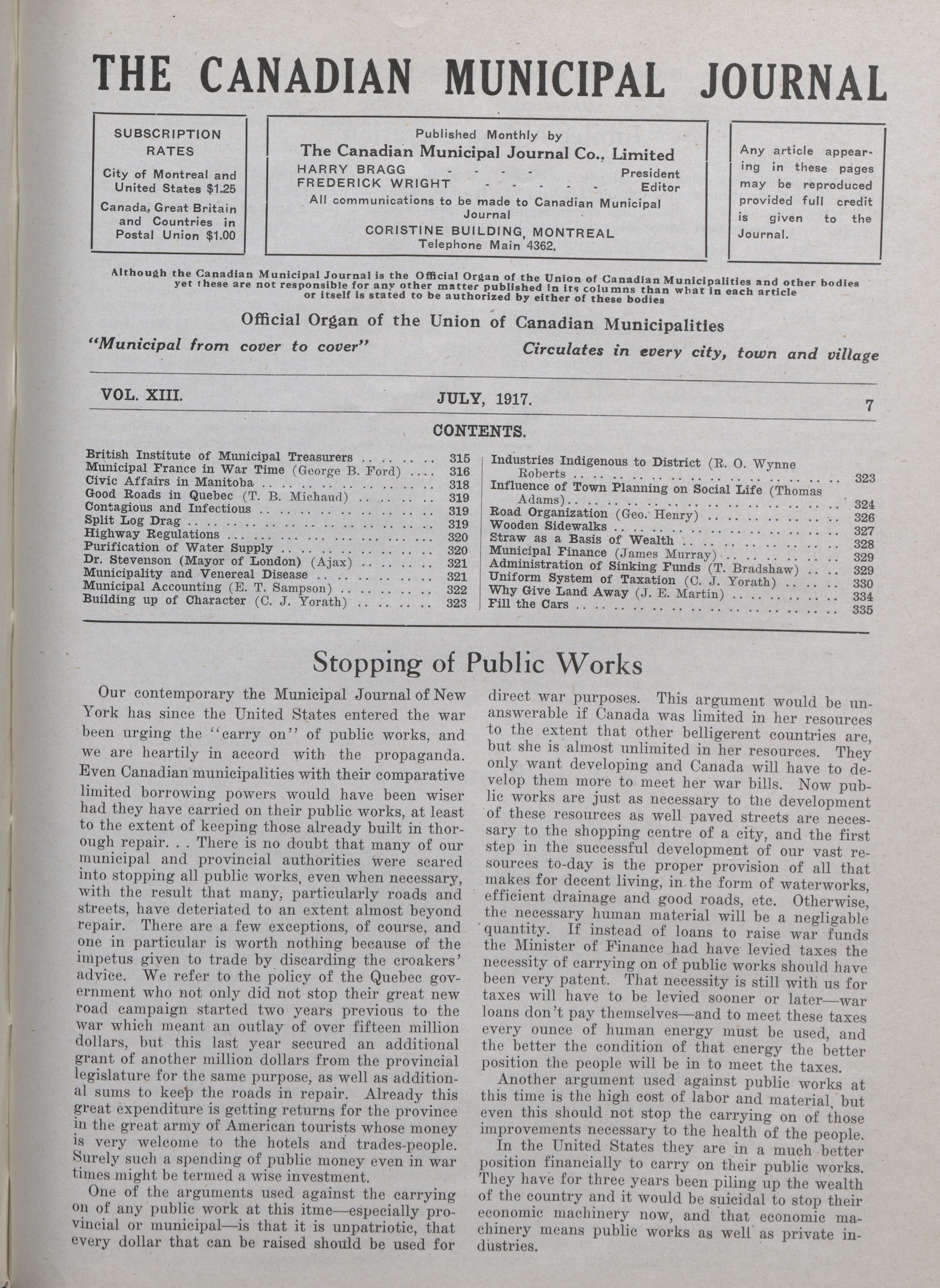 The Canadian Municipal Journal. : Vol. XIII, 7 (July, 1917)