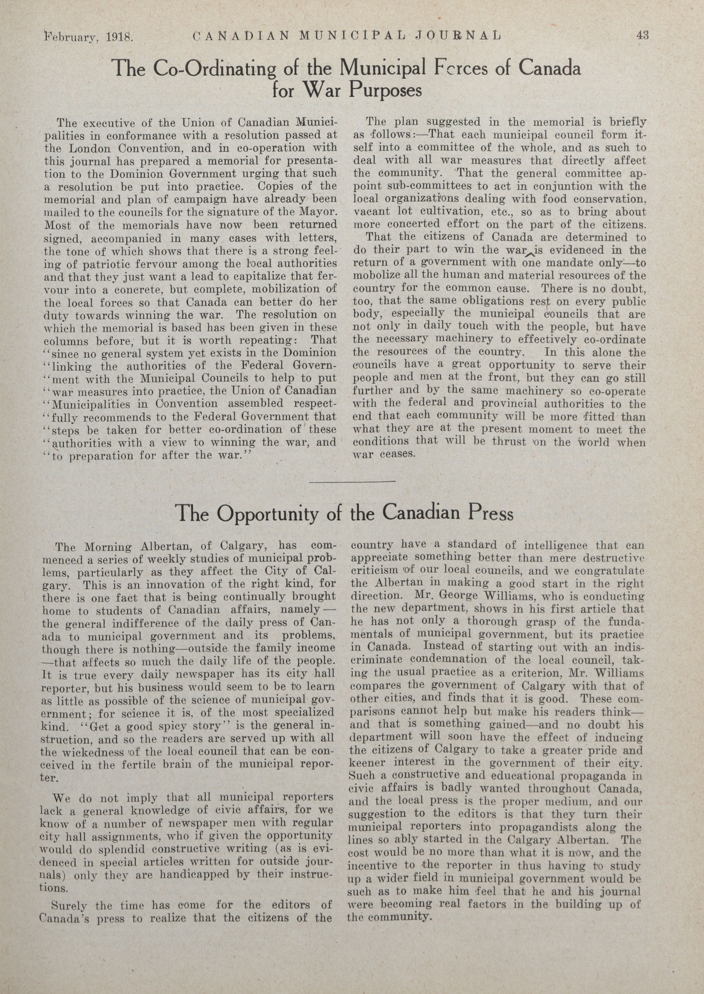 The Canadian Municipal Journal. : Vol. XIV, No. 2 (February, 1918)