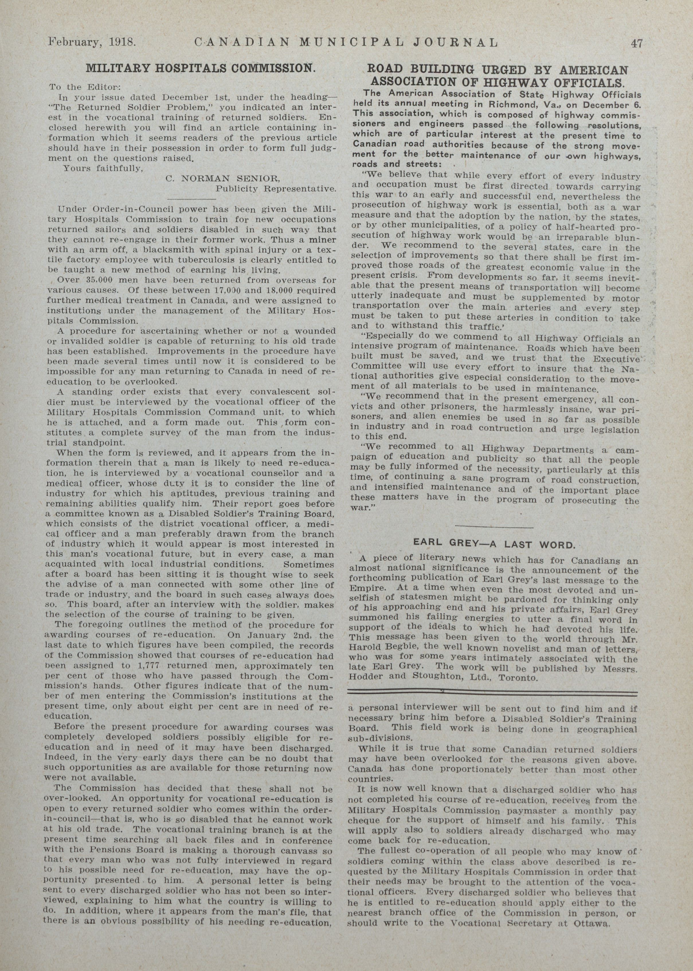 The Canadian Municipal Journal. : Vol. XIV, No. 2 (February, 1918)