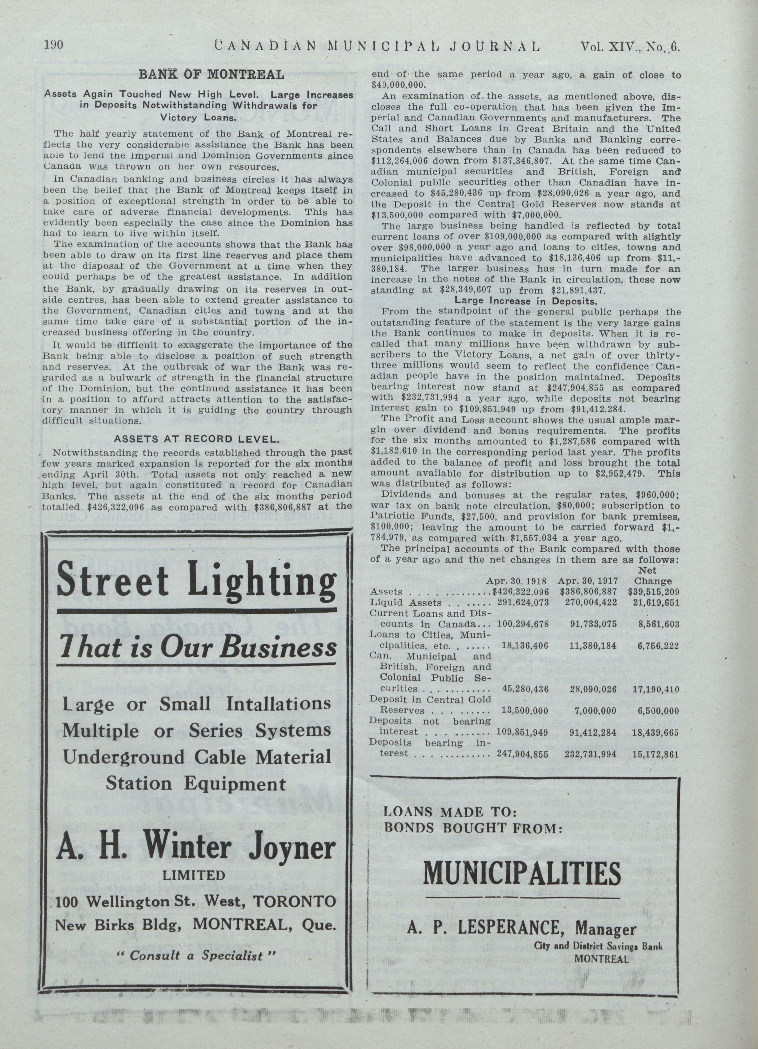 - The Canadian Municipal Journal. : Vol. XIV, No. 6 (June, 1918)