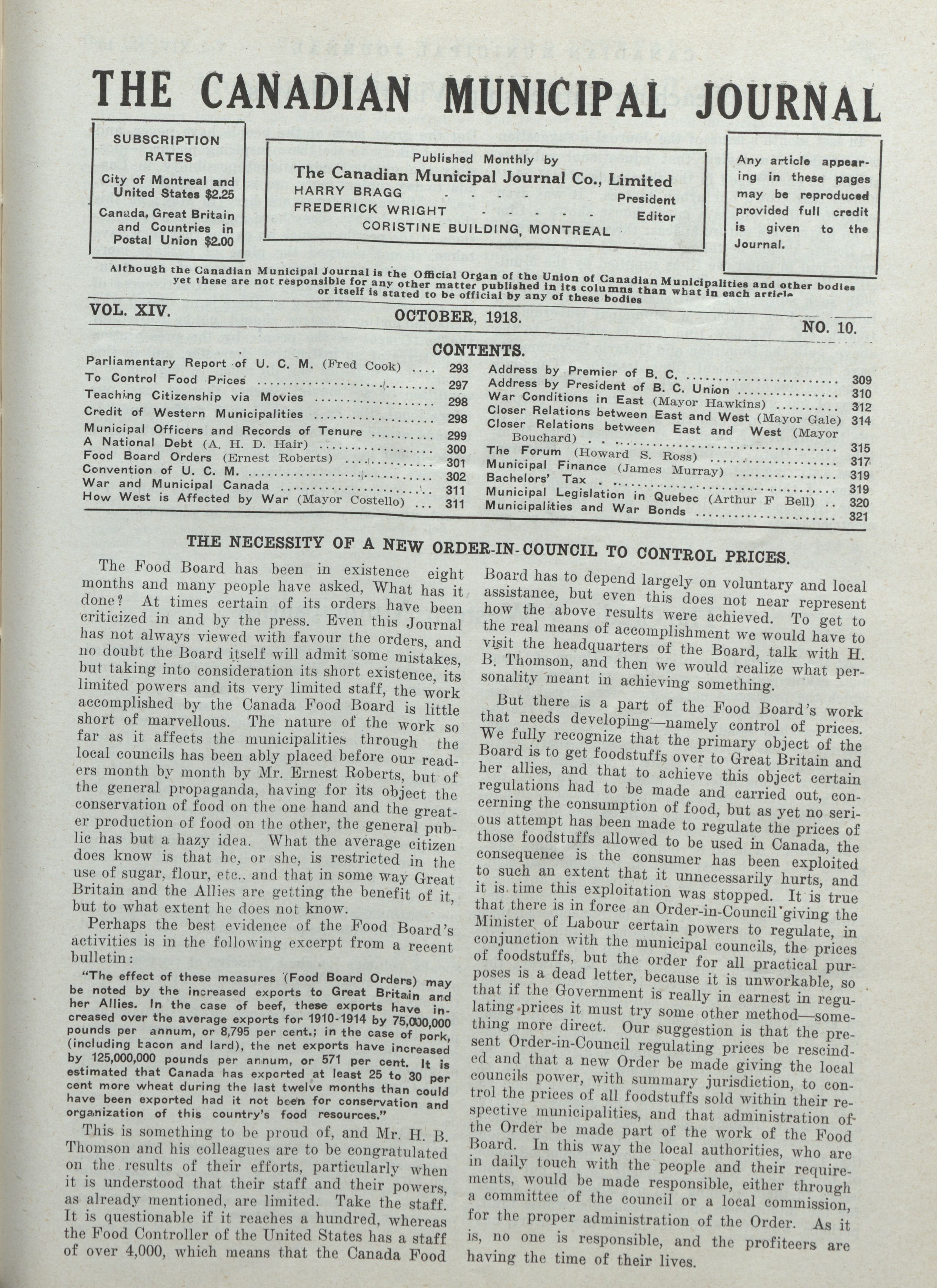- The Canadian Municipal Journal. : Vol. XIV, No. 10 (October, 1918)