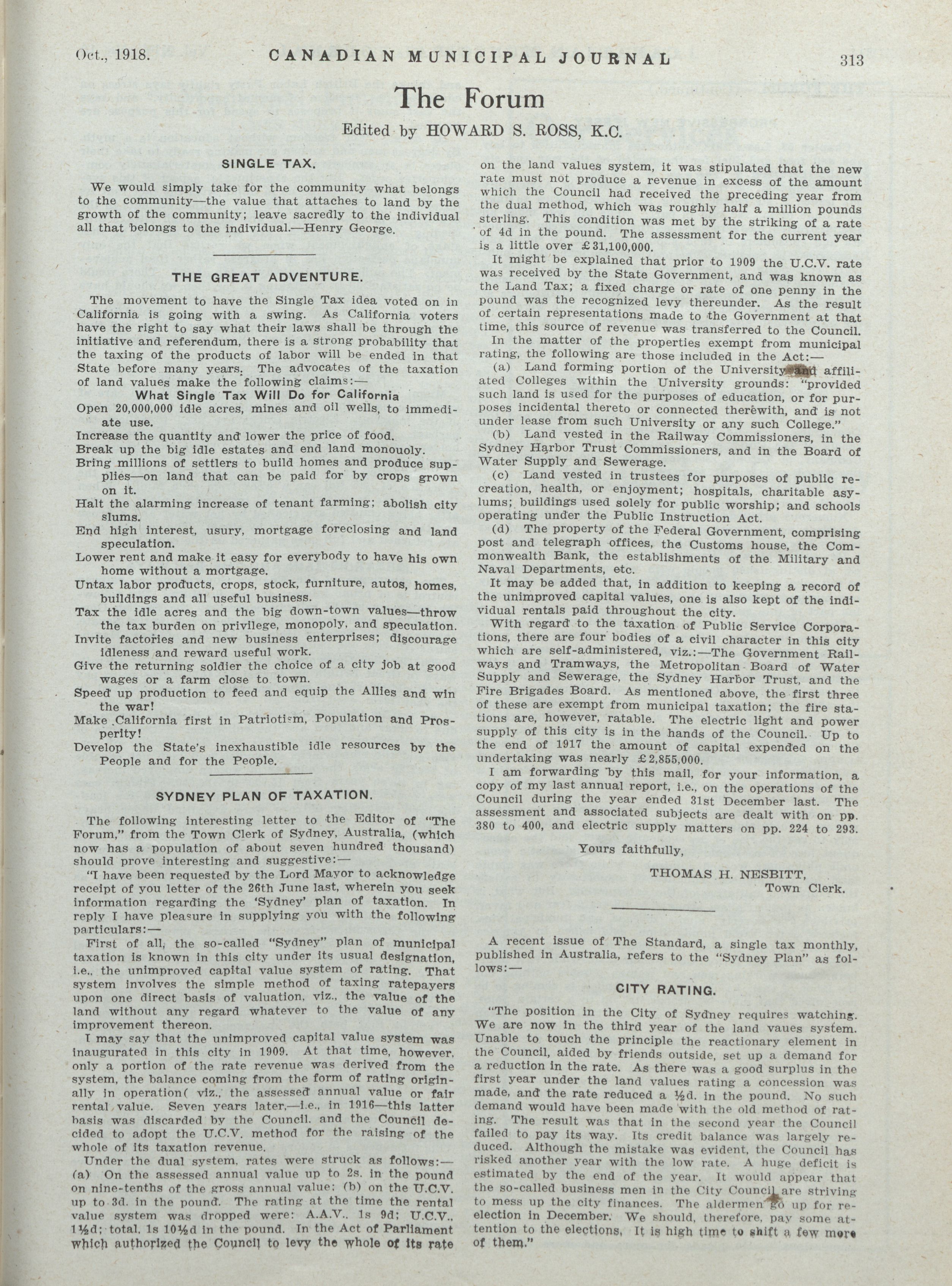 - The Canadian Municipal Journal. : Vol. XIV, No. 10 (October, 1918)