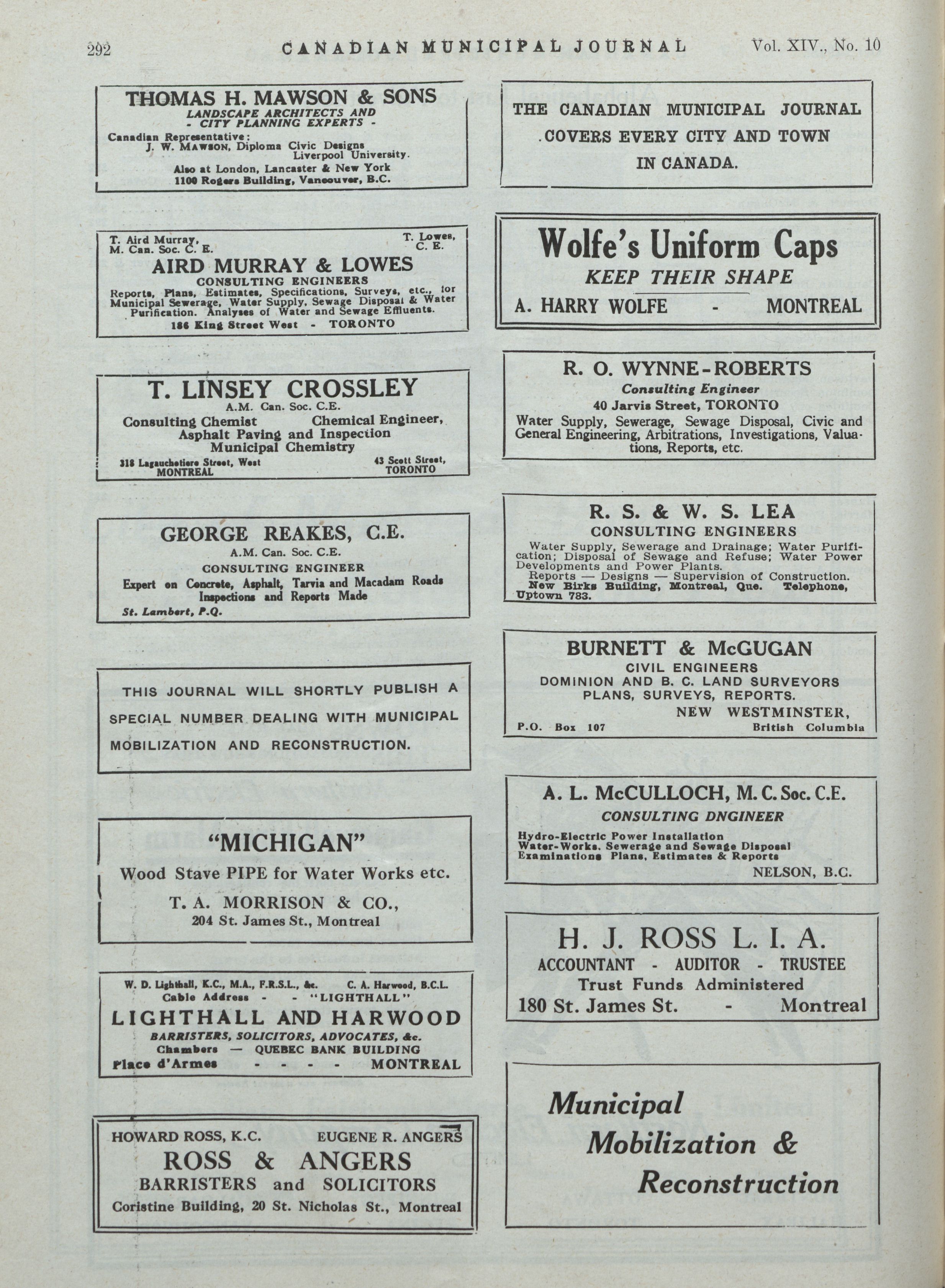 - The Canadian Municipal Journal. : Vol. XIV, No. 10 (October, 1918)